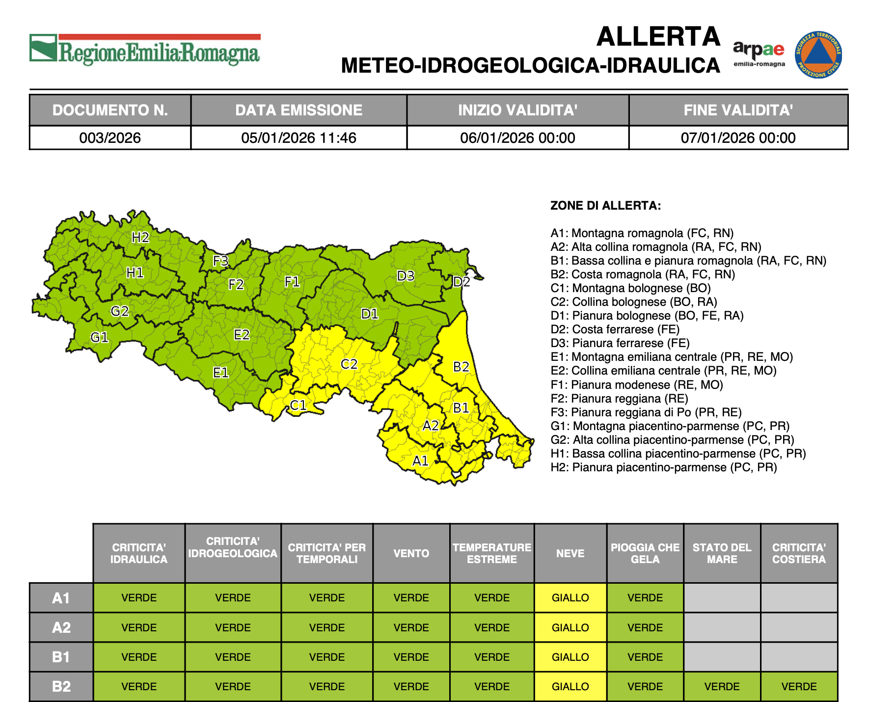 La Protezione civile regionale dell’Emilia Romagna ha emesso un’allerta meteo “gialla ” per neve per la giornata della befana - 6 gennaio - che riguarda anche l’area di riferimento “B2” che ricomprende la Provincia di Rimini.