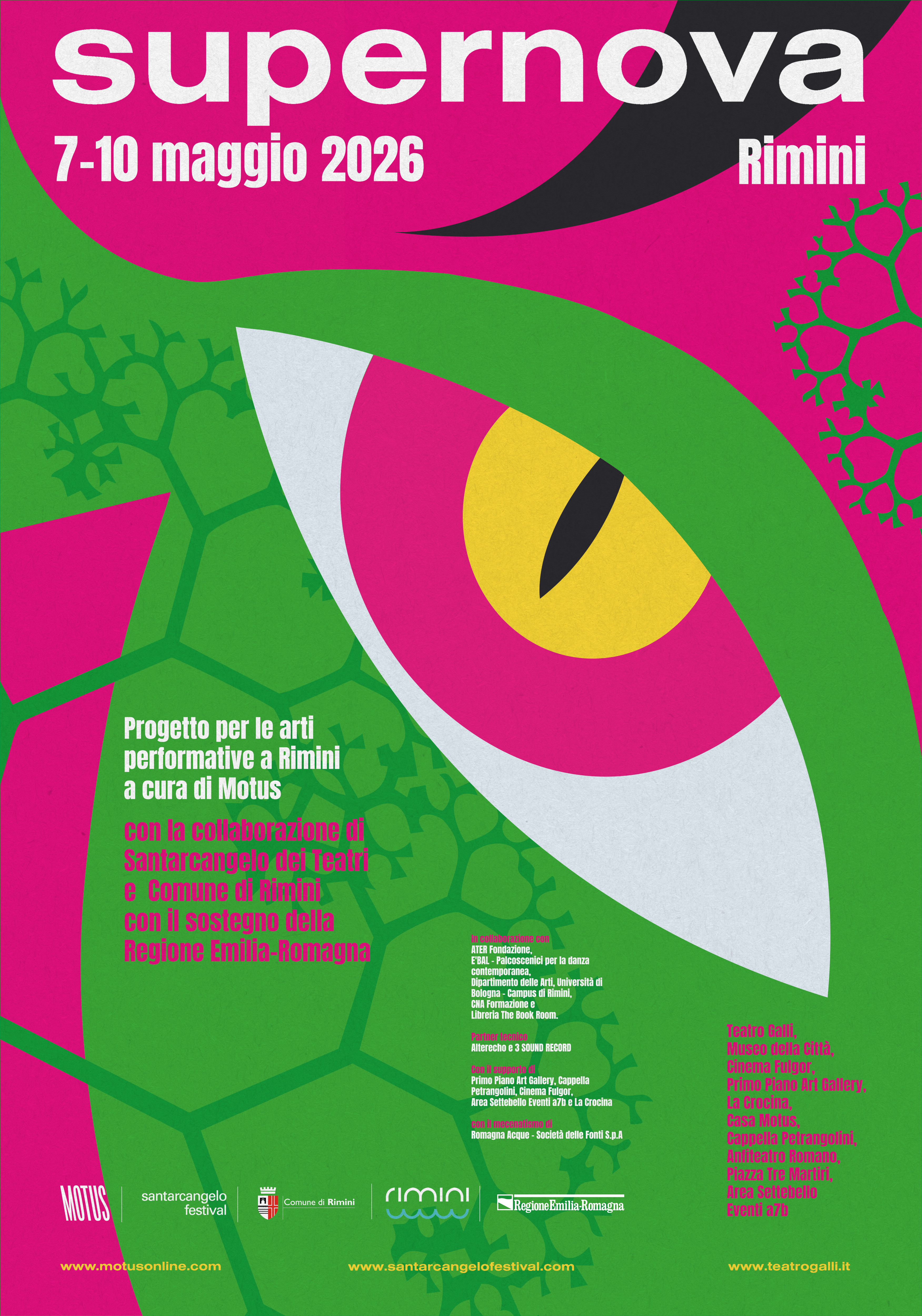 Torna a Rimini Supernova: dal 7 al 10 maggio, la quarta edizione della rassegna di arti performative con la curatela di Daniela Nicolò ed Enrico Casagrande (Motus) affiancati da Paola Granato, realizzata in collaborazione con Santarcangelo dei Teatri e il Comune di Rimini e con il sostegno della Regione Emilia-Romagna.