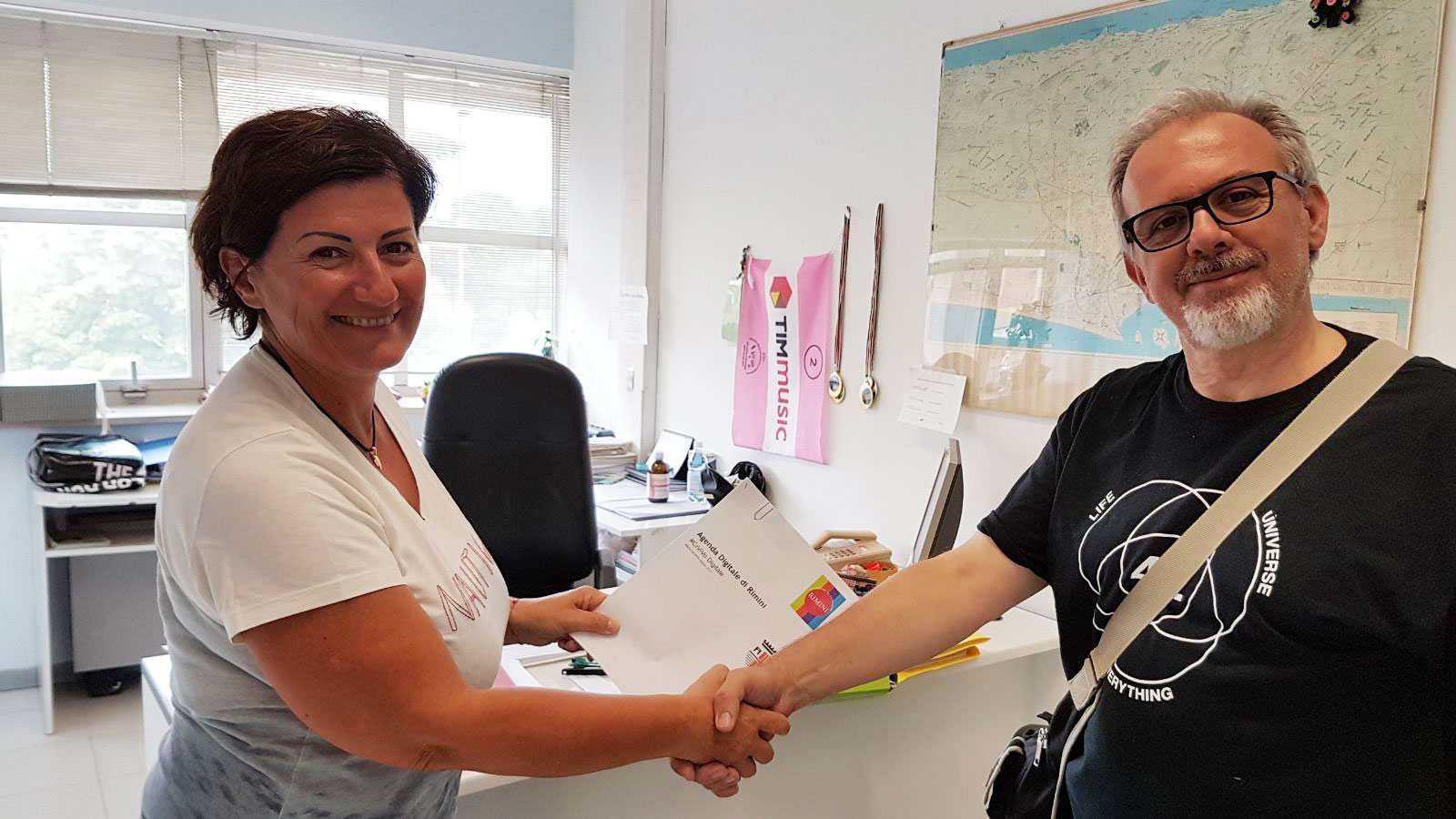Foto: il coordinatore del civivo digitale, Roberto Grassilli, con Roberta Mazza del Comune di Rimini