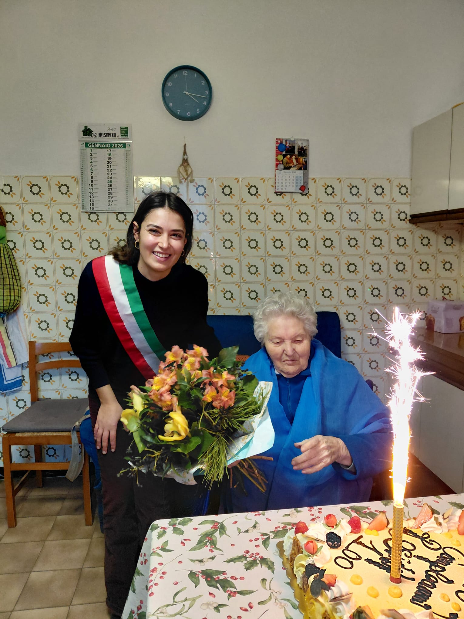 L'assessora Francesca Mattei ha voluto partecipare personalmente ai festeggiamenti per congratularsi con nonna Rosina, consegnandole un mazzo di fiori e una lettera di auguri da parte del sindaco Jamil Sadegholvaad.