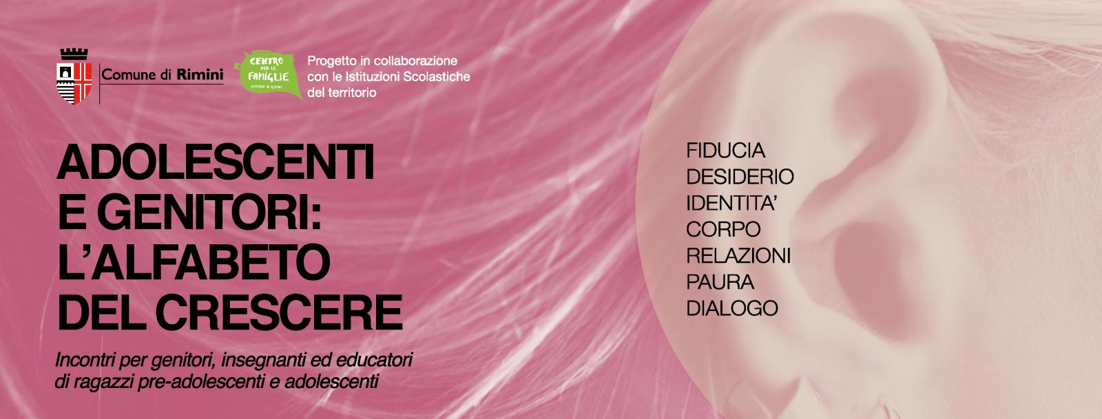 Torna il ciclo di incontri “Adolescenti e genitori: l'alfabeto del crescere”, organizzato dal Centro per le Famiglie del Comune di Rimini rivolto a genitori, insegnanti ed educatori di giovani tra i 9 e i 18 anni!