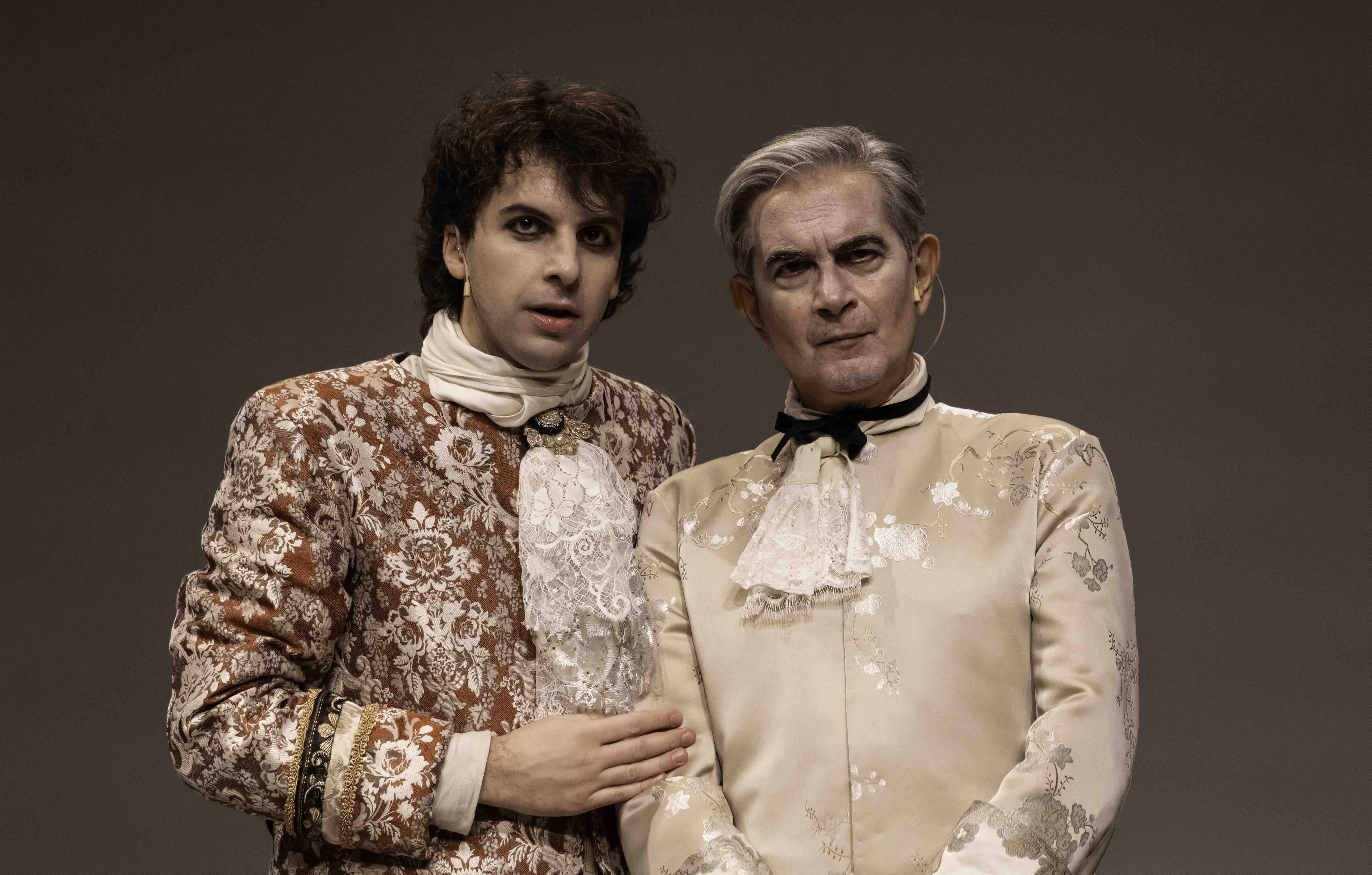 Il Salieri interpretato da Ferdinando Bruni è un uomo che, credendosi prediletto da Dio, si ritrova a odiare profondamente il segno della vera grazia divina: Mozart. E poiché non può eguagliarlo, cerca di distruggerlo. A ogni costo. Daniele Fedeli è un Mozart giovane, infantile e sfacciato, la cui arte sublime diventa insopportabile proprio per la sua inconsapevolezza.