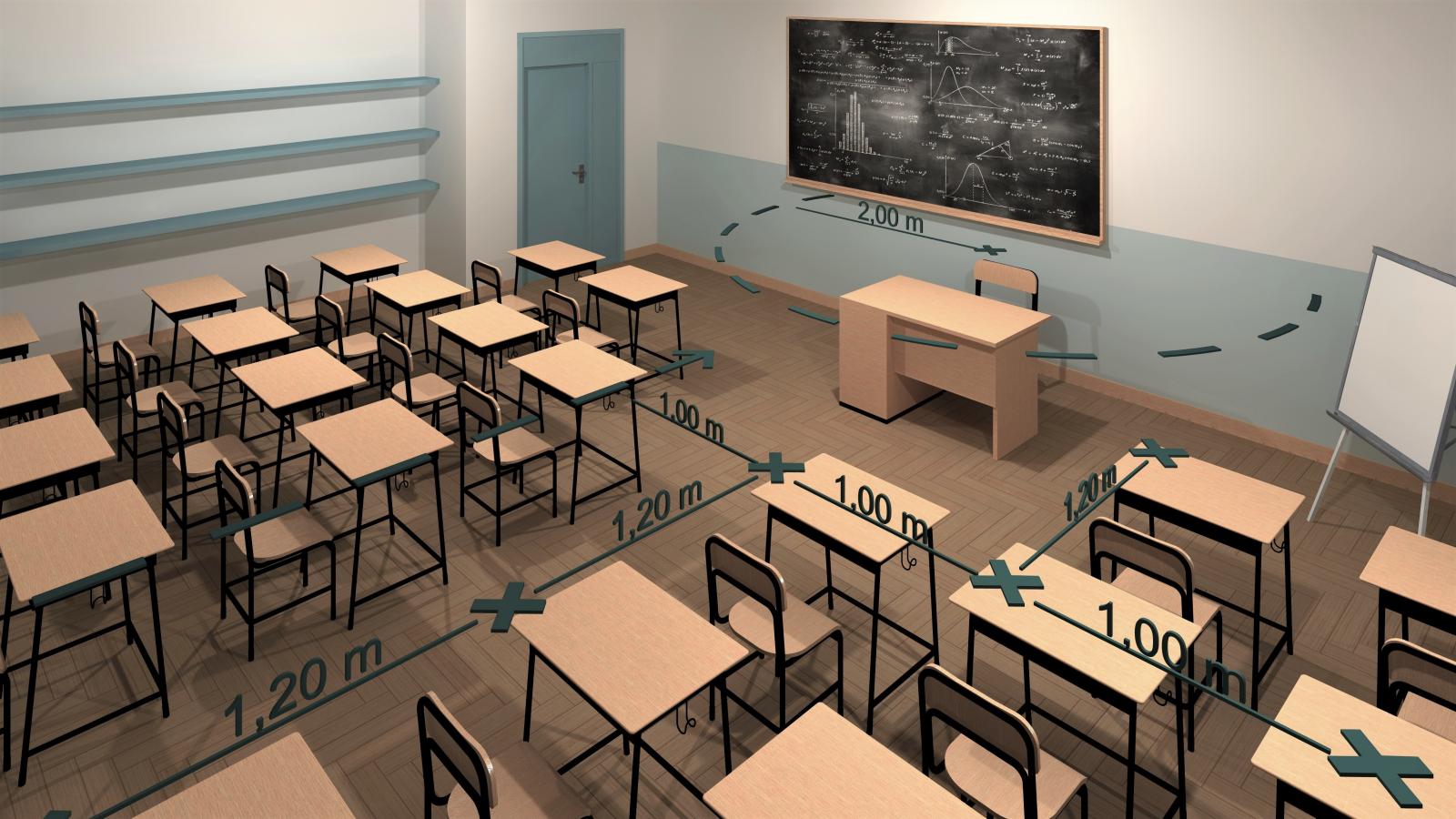 I parametri utilizzati per tempo dagli uffici comunali sono stati poi confermati da quelli ufficiali di sicurezza emanati successivamente dal Ministero - ovvero la distanza di 1 metro dalla bocca e di 2 metri dal docente al bambino. I primi interventi sono già partiti e, gradualmente, inizieranno quelli in tutte le scuole, per essere operativi per l’inizio delle attriti del prossimo anno scolastico. A tale scopo sono state prodotte le planimetrie delle aule di tutte le scuole elementari e medie presenti sul territorio e consegnate ai dirigenti scolastici, come nell’esempio del rendering che mostra il lavoro fatto per ogni aula in cui è previsto 1 metro da bambino a bambino e la distanza di 1,20 mt tra una fila e l’altra che è stata stabilita in maniera precauzionale.