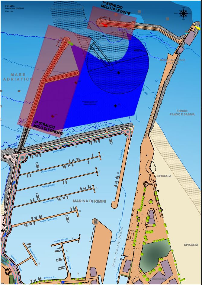 Il Comune di Rimini ha avviato nel 2020 la progettazione degli interventi necessari per completare le opere di protezione dell'imboccatura del porto canale, affidando alla società Enser S.r.l. la redazione del progetto di fattibilità. L'intervento prevede il prolungamento delle dighe foranee di Levante e Ponente esistenti, al fine di migliorare l'accessibilità e garantire la sicurezza della navigazione nel porto canale riminese.