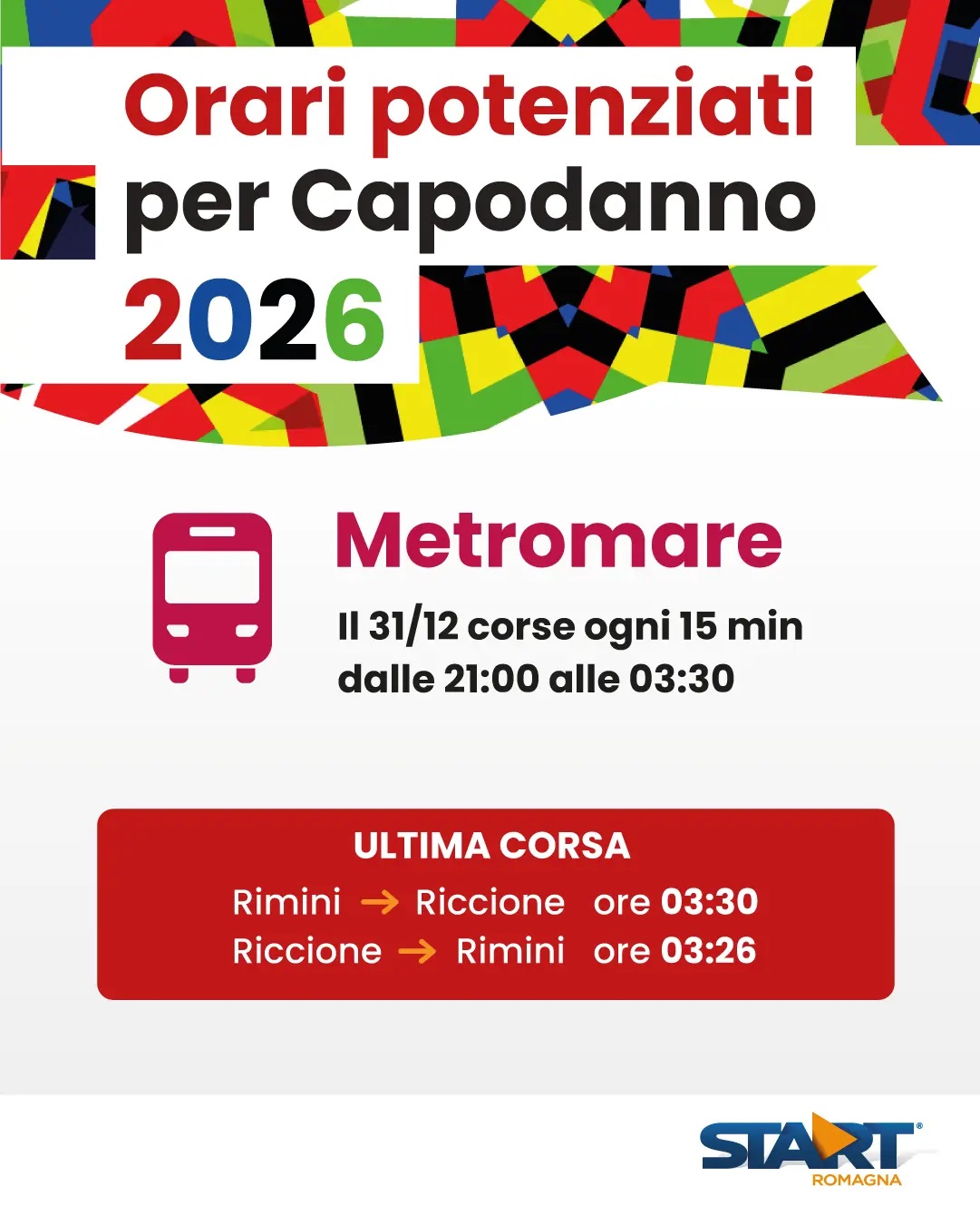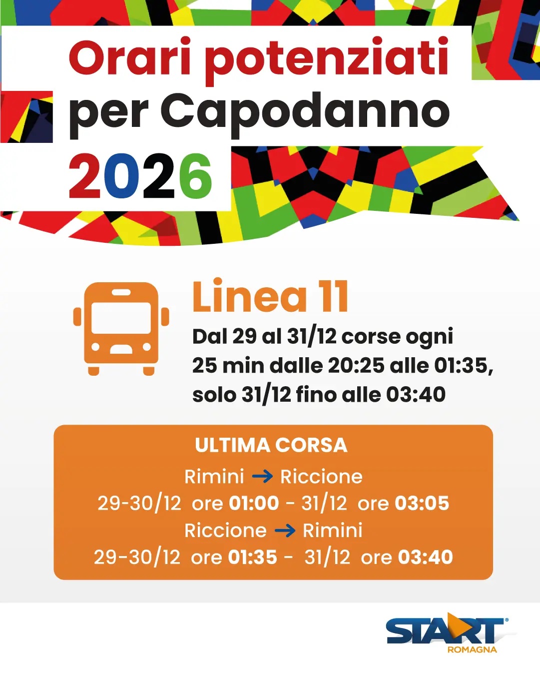 – Ultima corsa in partenza da San Mauro Mareper Rimini alle ore 02.05