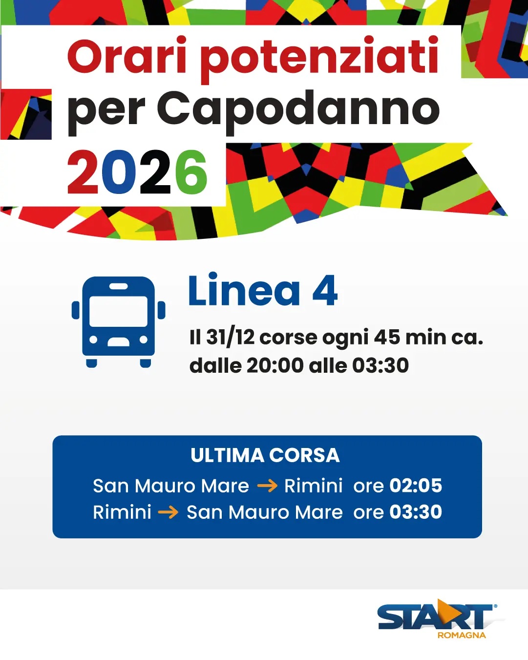 – Ultima corsa in partenza da Rimini per San Mauro Mare alle ore 03.30