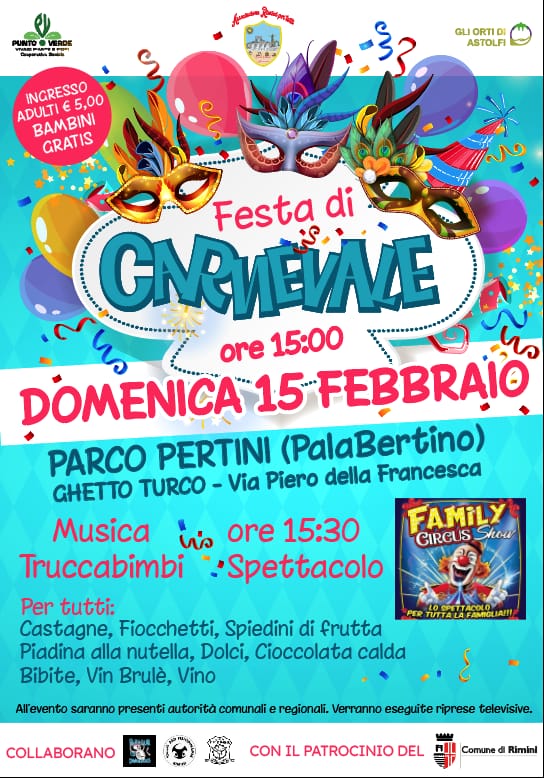 Il Carnevale cittadino trasforma il cuore del centro storico in un palcoscenico a cielo aperto. Piazza Cavour diventa il fulcro di un'esperienza internazionale, ospitando artisti provenienti da Italia, Argentina, Cile e Francia, per due pomeriggi all’insegna del divertimento e della socializzazione. L'evento propone un viaggio tra arti antiche e contemporanee, offrendo a famiglie e visitatori un’atmosfera magica fatta di giocoleria, acrobazie e musica. Una riscoperta delle tradizioni con le immancabili maschere, i coriandoli e le stelle filanti, per un intrattenimento diffuso nel centro storico di Rimini, a cura di Made Officina Creativa.
