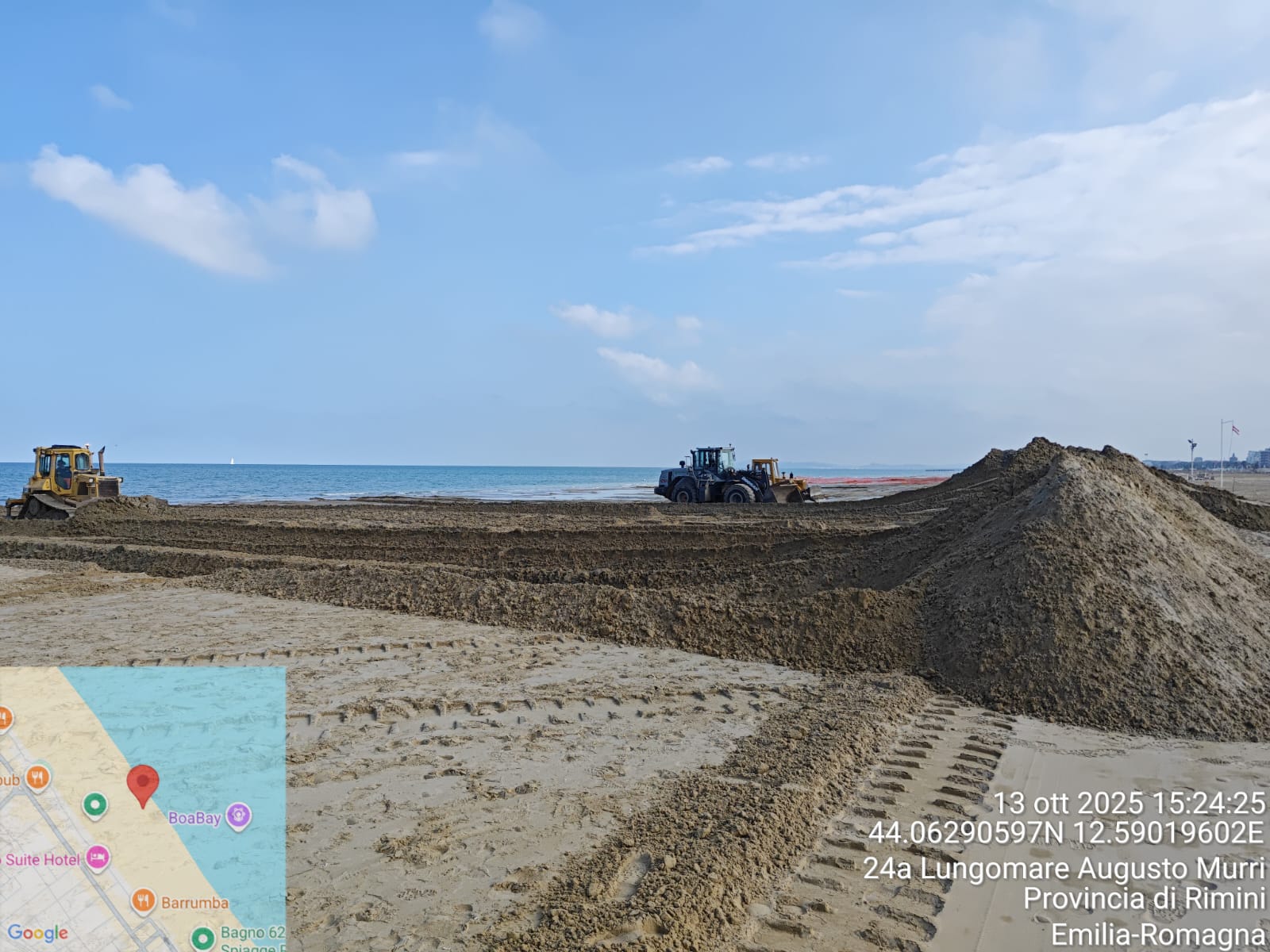 Sono iniziati il 6 ottobre e verranno completati entro la fine del mese di ottobre i lavori di accumulo della sabbia sotto forma di dune invernali nei tratti che vanno dalla spiaggia libera del porto canale fino ai bagni all'altezza di piazzale Benedetto