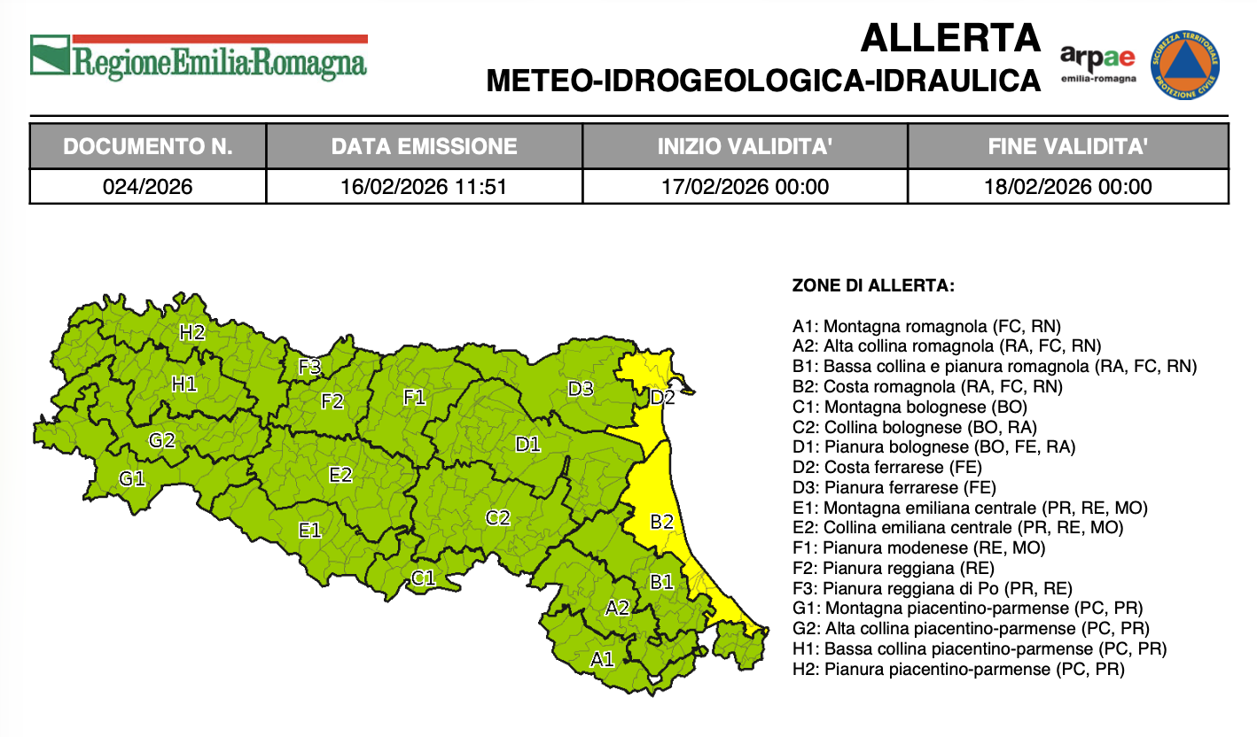 Per la giornata di martedì 17 febbraio si prevedono livelli del mare prossimi o superiori al livello di attenzione, che possono generare localizzati fenomeni di ingressione marina ed erosione del litorale, anche a causa delle vulnerabilità presenti sul territorio. Inoltre, nelle zone montane/collinari, non si escludono localizzati fenomeni franosi sui versanti caratterizzati da condizioni idrogeologiche particolarmente fragili a seguito delle precipitazioni dei giorni precedenti e della fusione del manto nevoso. Si segnalano inoltre possibili venti forti (50-61 Km/h) da Nord-Ovest con temporanei rinforzi o raffiche di intensità superiore, specie nelle aree collinari e montane, in attenuazione in serata.