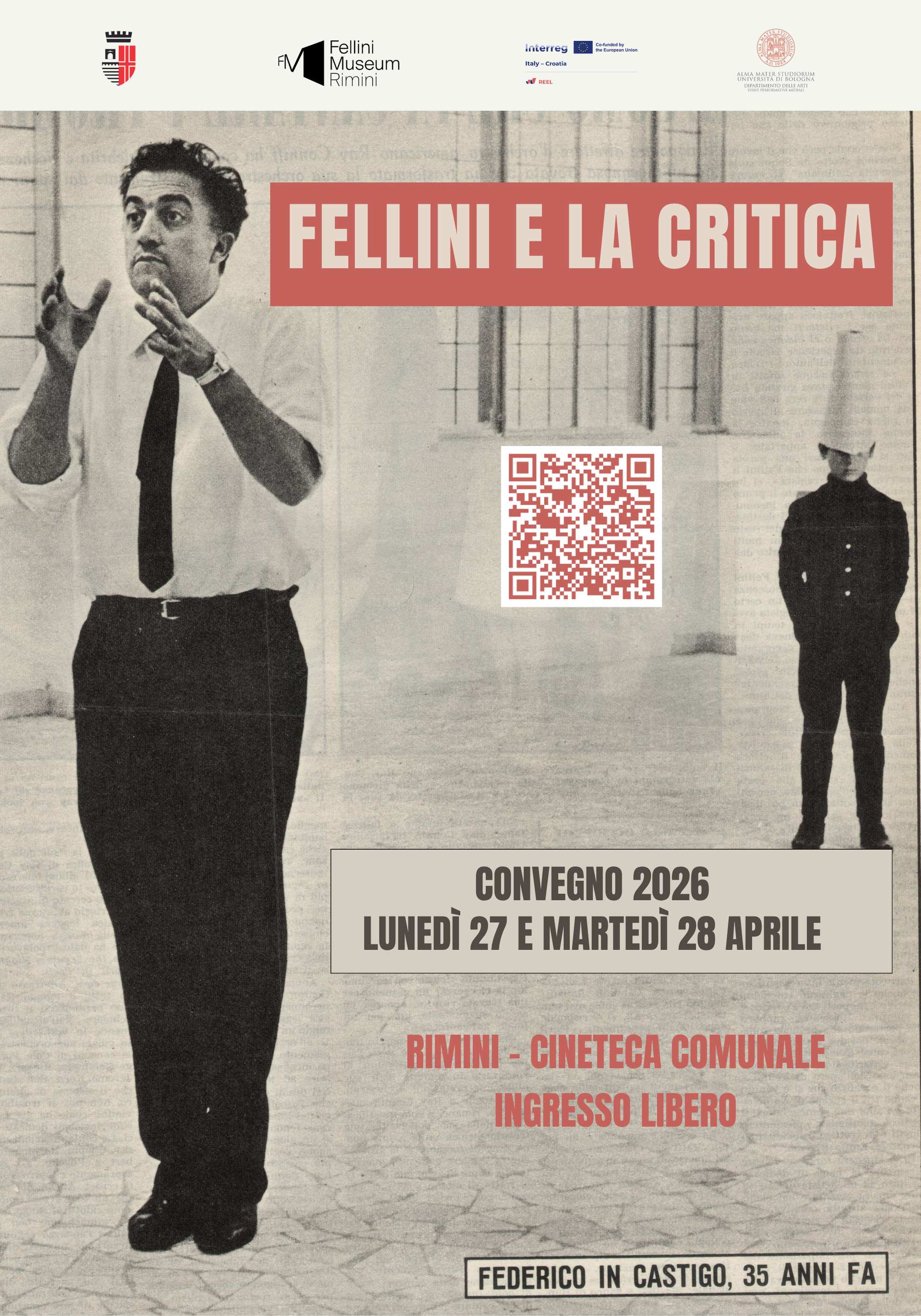 Rimini conferma il proprio ruolo di capitale degli studi felliniani con una nuova edizione delle giornate dedicate al cinema di Federico Fellini. Lunedì 27 e martedì 28 aprile la Cineteca comunale di Rimini ospiterà “Fellini e la critica”, convegno promosso da FM – Fellini MuseumRimini e dal Dipartimento delle Arti dell’Università di Bologna, con il sostegno del progetto REEL del programma Interreg Italia-Croazia 2021-2027.