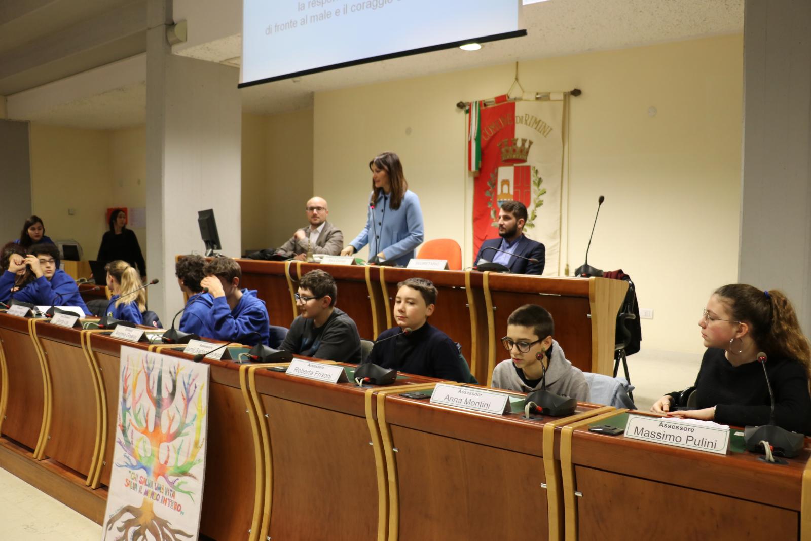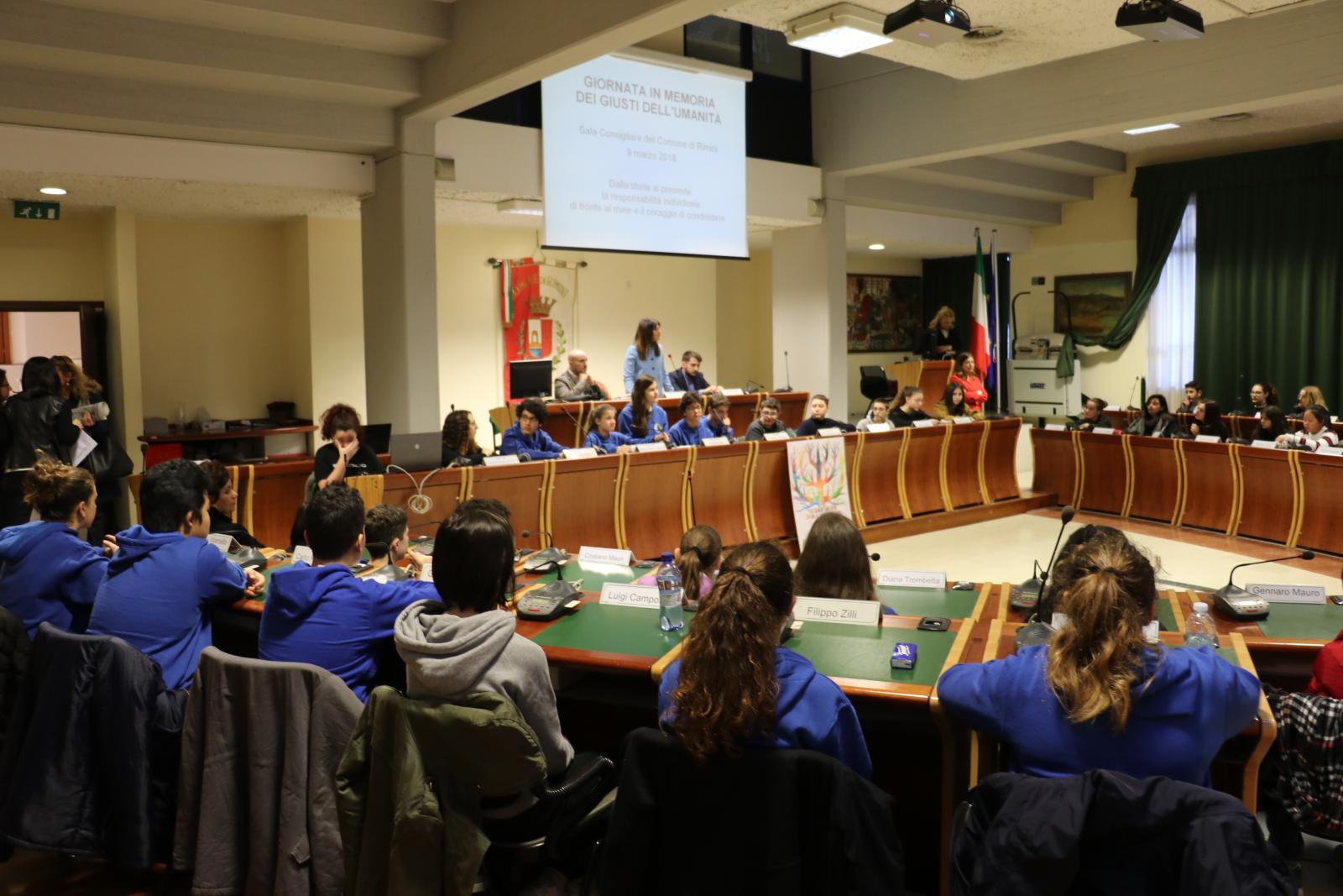 Giornata in memoria dei Giusti dell’umanità: ricevute in consiglio comunale le classi della scuola media Dante Alighieri per presentare le loro ricerche sui giusti del riminese