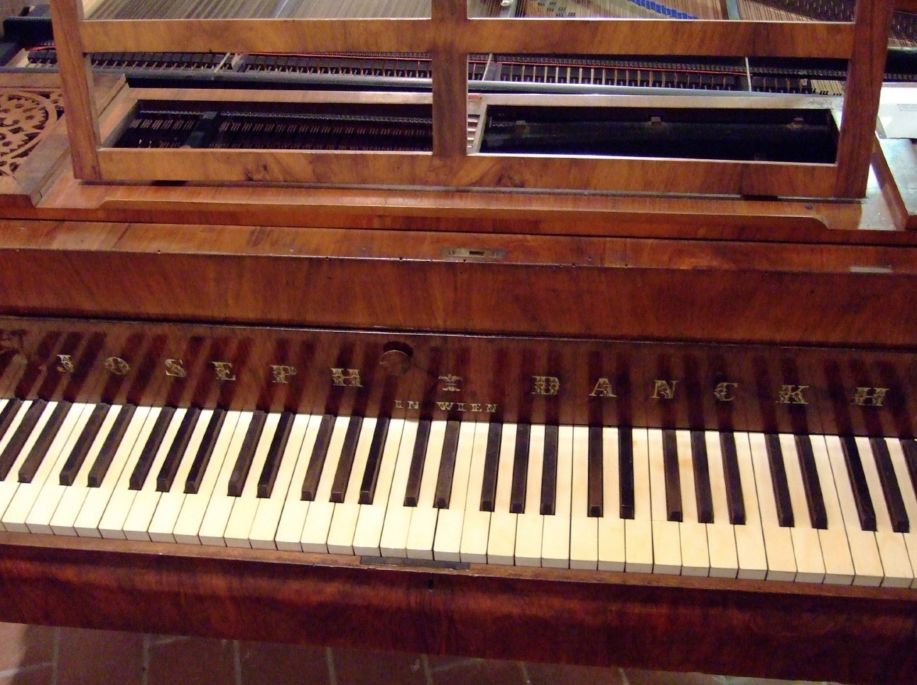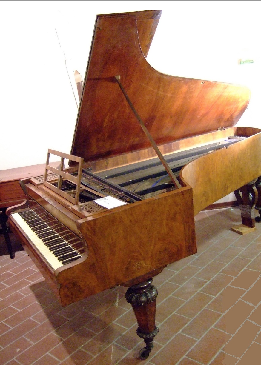 Il pianoforte - un Joseph Danckh di scuola viennese costruito negli anni cinquanta dell'Ottocento – fu utilizzato nel 1857 per l'inaugurazione del Teatro nuovo di Rimini per la rappresentazione dell’Aroldo di Giuseppe Verdi con il grande compositore presente in sala. Fu messo a disposizione dalla contessa Marcella Dellasanta Lotti. Come indicato in un cartiglio inserito nello strumento, nel 1889 il pianoforte fu oggetto di un passaggio di mano a seguito di donazione. Alla fine del Novecento lo strumento venne ritrovato dall'avvocato Pierluigi Bianchini Mortani in una villa settecentesca allocata sulle colline di Rimini avuta in eredità da uno zio. In seguito il pianoforte è stato donato da Pierluigi alla contessa Teresa D'Albertis moglie del conte Alberto Scotti, che a sua volta lo donò ad Atanasio Cecchini, imprenditore, storico, esperto e consulente d’arte Quest’ultimo lo ha ceduto all'Accademia dei Musici, che lo ha integralmente restaurato rispettando le iniziali caratteristiche tecniche e sonore dello strumento.