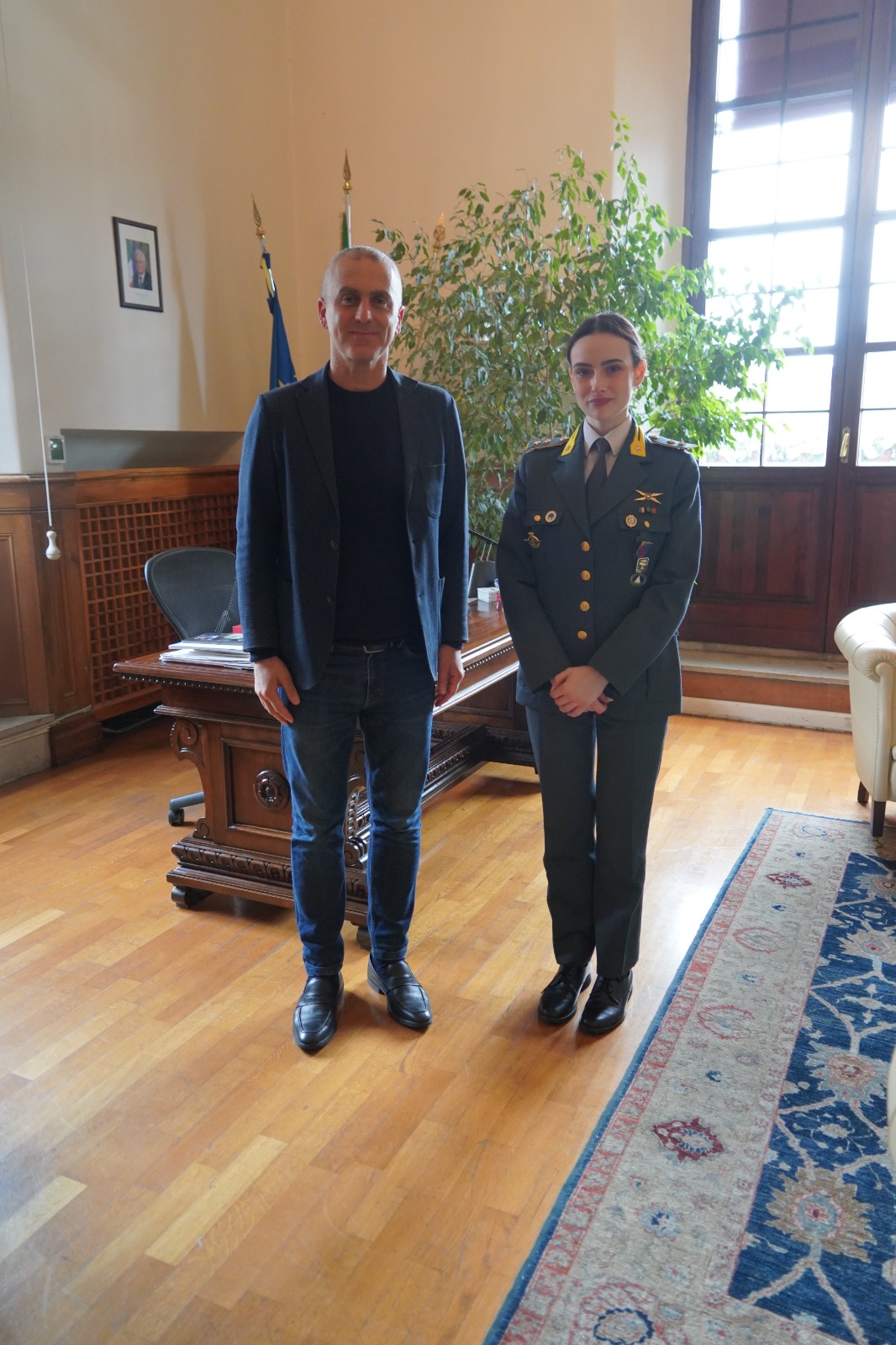 Il Sindaco Jamil Sadegholvaad ha ricevuto nel suo ufficio la Tenente Pilota Flavia Gnoffo, nuovo Comandante del Nucleo Operativo della Sezione Aerea della Guardia di Finanza di Rimini, in un incontro istituzionale. Nel corso del colloquio, il primo cittadino ha voluto esprimere personalmente il proprio più sentito benvenuto alla giovane ufficiale, rivolgendole al contempo le più sincere congratulazioni per il prestigioso incarico appena assunto.