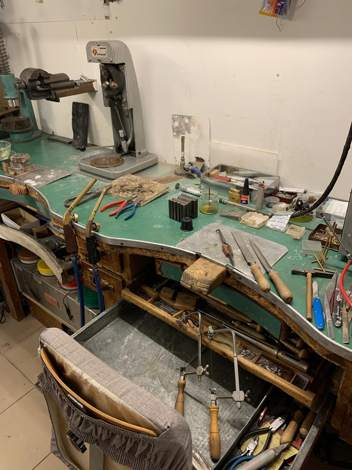 Un luogo dove la tradizione non è solo memoria, ma pratica quotidiana: bilance pesa-oro risalenti agli anni Quaranta, punzonatrici manuali, banchi da lavoro storici, pantografi per incisioni e strumenti per la lavorazione e l’incassatura delle pietre preziose sono tuttora utilizzati, testimoniando una manualità che continua a vivere nel presente.