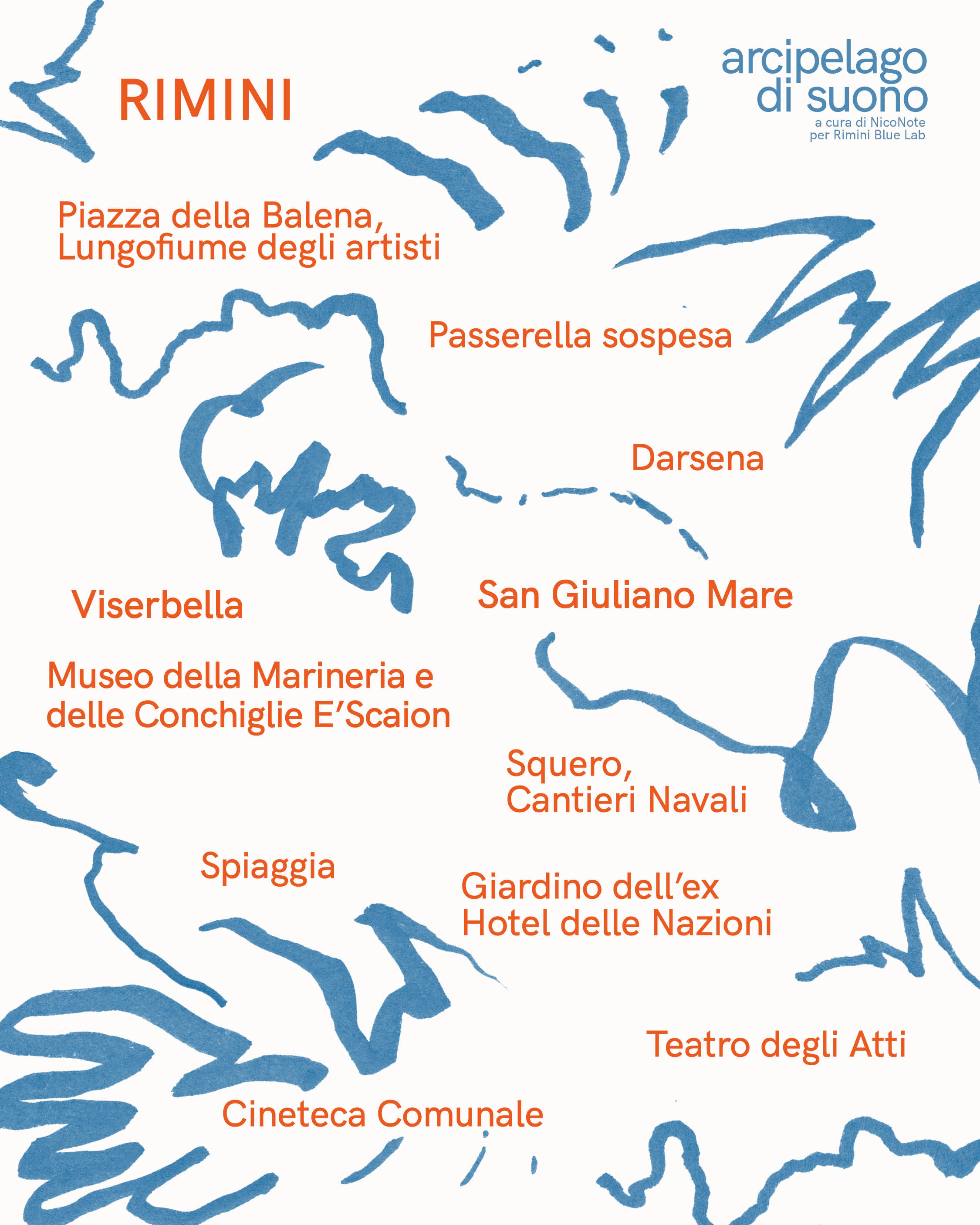 Arcipelago di Suono è promosso nell’ambito del progetto ATUSS del Comune di Rimini “Rimini Blue Lab,  il laboratorio riminese dell’economia verde e blu” finanziato con i Fondi europei della Regione Emilia-Romagna (FSE+ 2021–2027). In collaborazione con: Piano strategico della cultura di Rimini, Fondazione Piano Strategico, Marina di Rimini, Museo della Marineria e delle Conchiglie E'Scaion di Viserbella, Comitato Turistico di San Giuliano Mare. Si ringraziano: Start Romagna, Visit Rimini, Palacongressi di Rimini, Caffè dell’Orto, Giò Mare, Adria Yachts. Media Partner: Radio Raheem