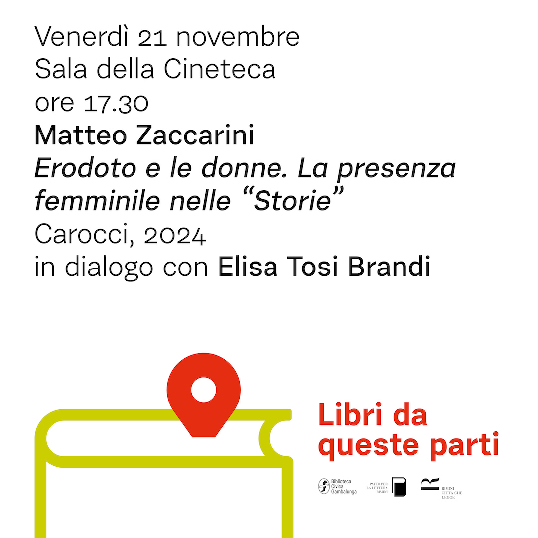 Nella settimana che anticipa la giornata mondiale per l’eliminazione della violenza sulle donne la rassegna “Libri da queste parti” dedica l’appuntamento di venerdì 21 novembre (Biblioteca Gambalunga, sala della Cineteca, ore 17.30) alla presentazione del libro di Matteo Zaccarini Erodoto e le donne. La presenza femminile nelle “Storie”(Carocci, 2025).