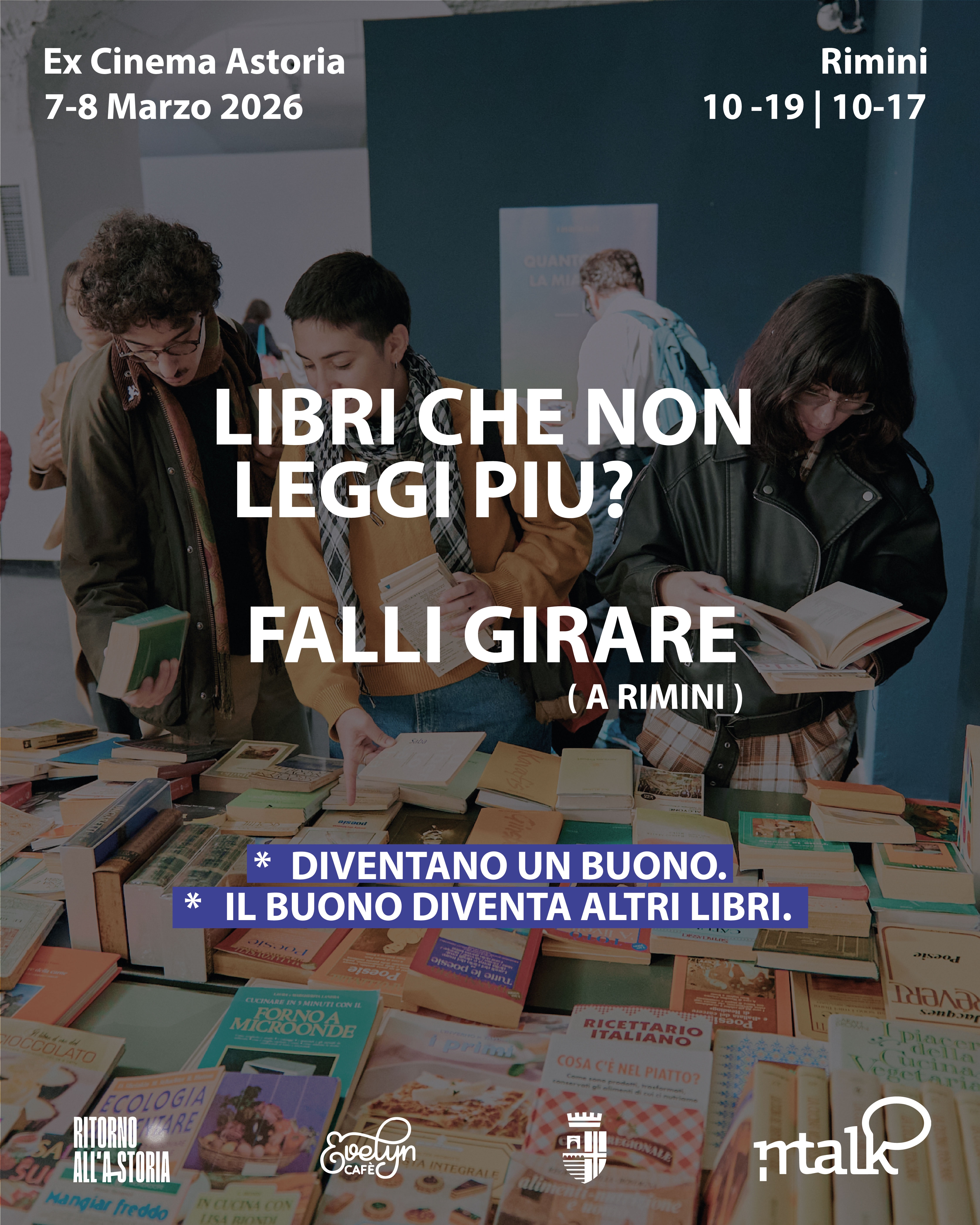 Sabato 7 marzo (dalle 10:00 alle 19:00) e domenica 8 marzo (dalle 10:00 alle 17:00) sarà possibile acquistare tantissimi libri a 10€ al kilo presso l’ex Cinema Astoria nell’ambito del progetto “Ritorno all'Astoria” promosso dall’associazione Il Palloncino Rosso che dal 2015 si occupa di rigenerazione urbana.