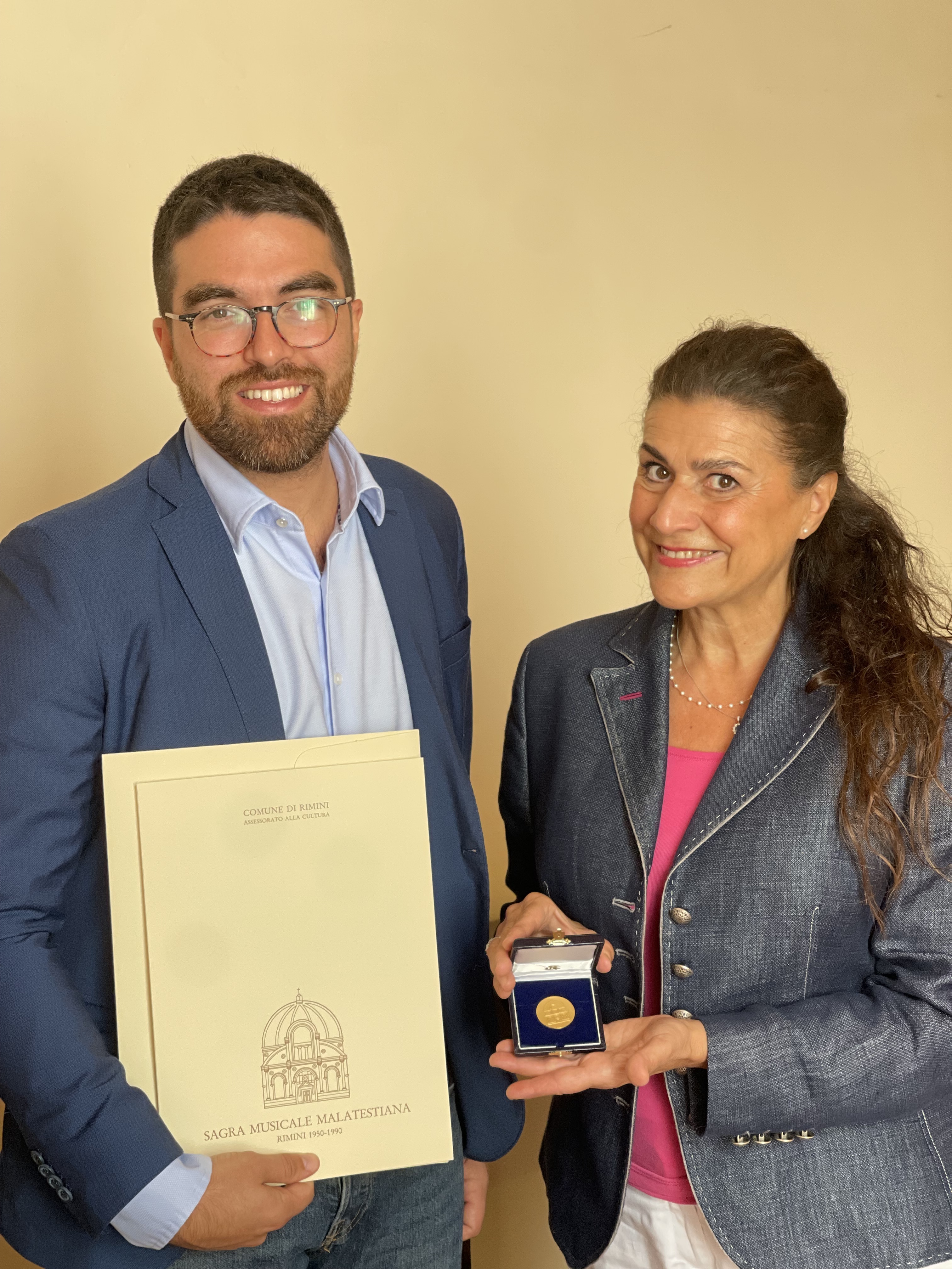 Un’amicizia che l’Amministrazione Comunale ha voluto rendere in qualche modo ufficiale: ieri durante una visita alla Biblioteca Gambalunga, l’assessore alla Cultura Michele Lari insieme al direttore artistico della stagione musicale Giampiero Piscaglia ha consegnato a Cecilia Bartoli la ‘medaglia’ della Sagra Musicale Malatestiana e l’emissione filatelica realizzata nel 1990 su immagine dal grafico Massimo Dolcini in occasione della quarantesima edizione della rassegna.