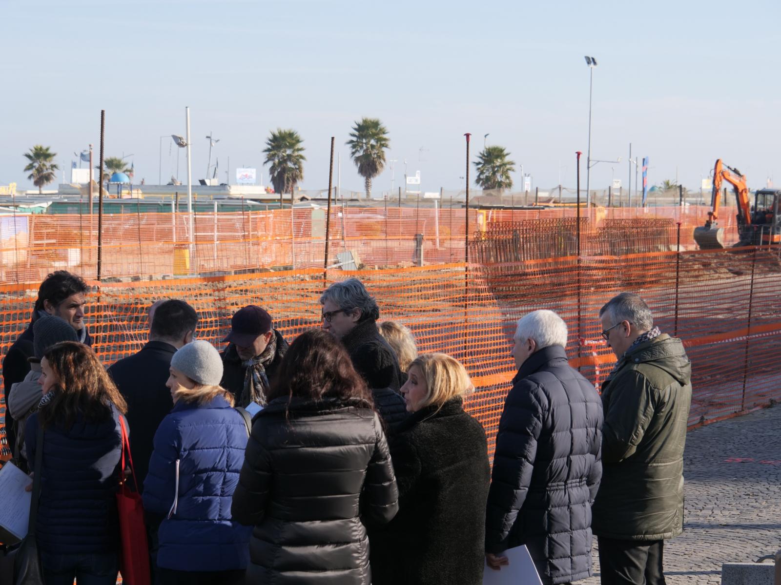 Opere che avanzano e progetti al via: ieri il sopralluogo del sindaco Gnassi, dell’assessore Frisoni, dirigenti e tecnici ai cantieri del lungomare sud