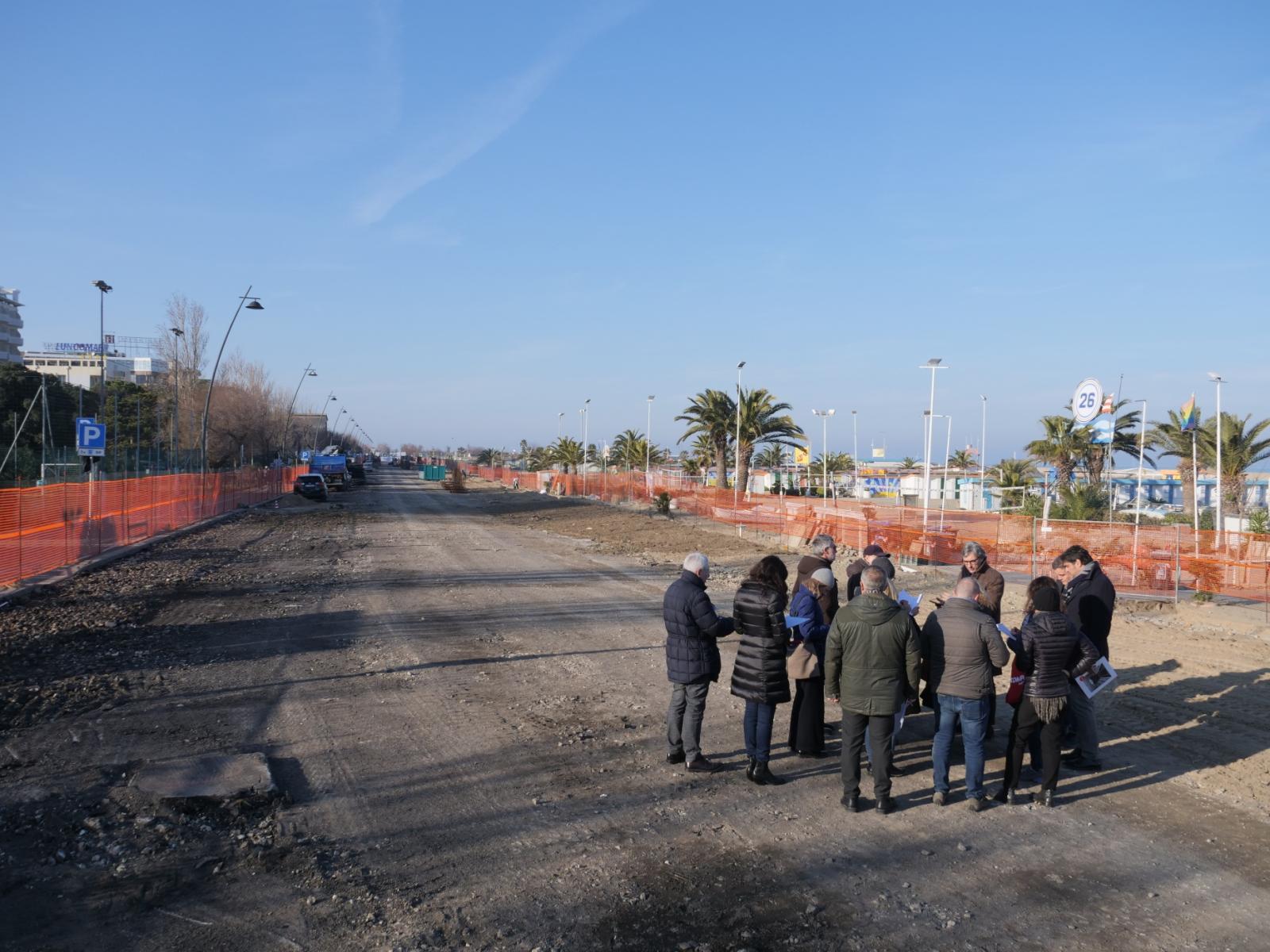 Il sindaco Andrea Gnassi e l’assessore alla pianificazione territoriale Roberta Frisoni, accompagnati da dirigenti e tecnici, hanno effettuato ieri pomeriggio un lungo e approfondito sopralluogo sui lungomare sud, sia per verificare l’avanzamento dei cantieri nelle zone dove i lavori sono già partiti – lungomare Tintori a Marina Centro e lungomare Spadazzi a Miramare – sia per fare il punto sui progetti delle aree dove i lavori sono in fase di definizione o stanno per partire.