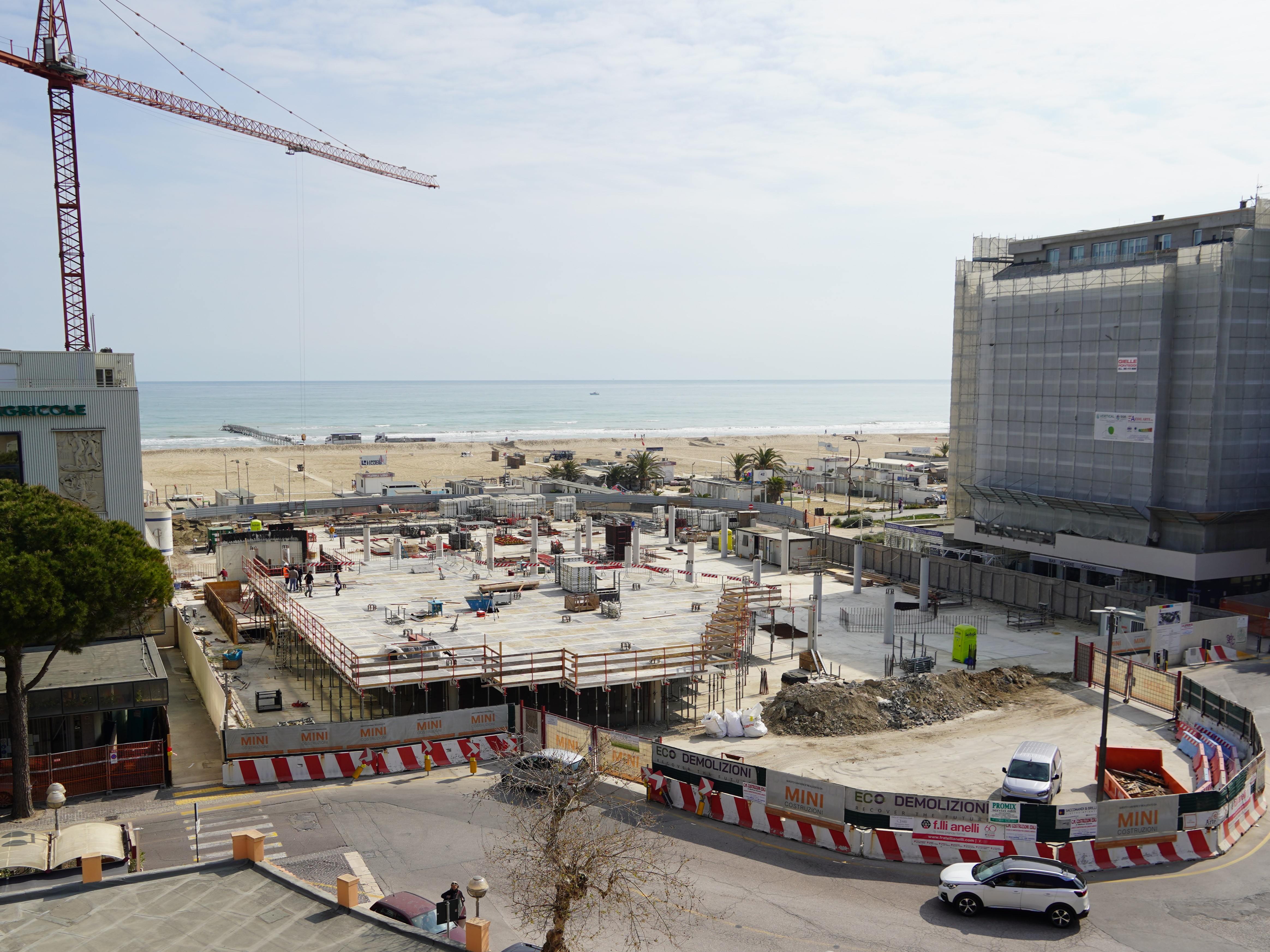 In parallelo si lavora anche in superficie, per la piattaforma di quella che diventerà la nuova piazza sopraelevata Marvelli, oggetto di un importante intervento di valorizzazione urbana la cui realizzazione partirà alla fine della stagione estiva 2026. In questi giorni si partirà con il getto delle scale per l’accesso dalla piazza al parcheggio.
