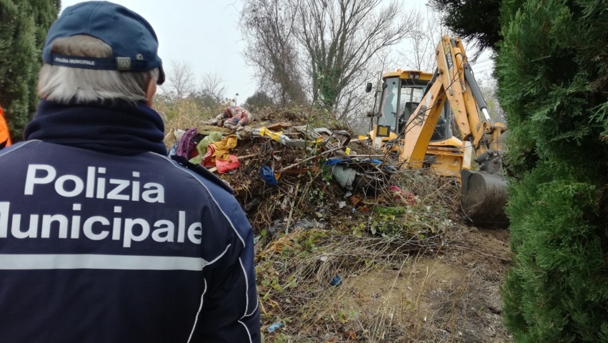 Dopo un primo sopralluogo preliminare che ha constatato realizzato la presenza tra la vegetazione di capanne e giacigli di fortuna, ieri mattina lo sgombero effettuato oltreché dagli agenti in collaborazione con gli operatori di Hera e d’Anthea.