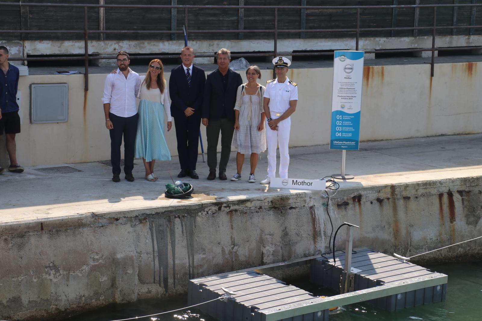 Progetto LifeGate PlasticLess per la lotta alle plastiche nei mari italiani. La posa del cestino Seabin nel porto di Rimini