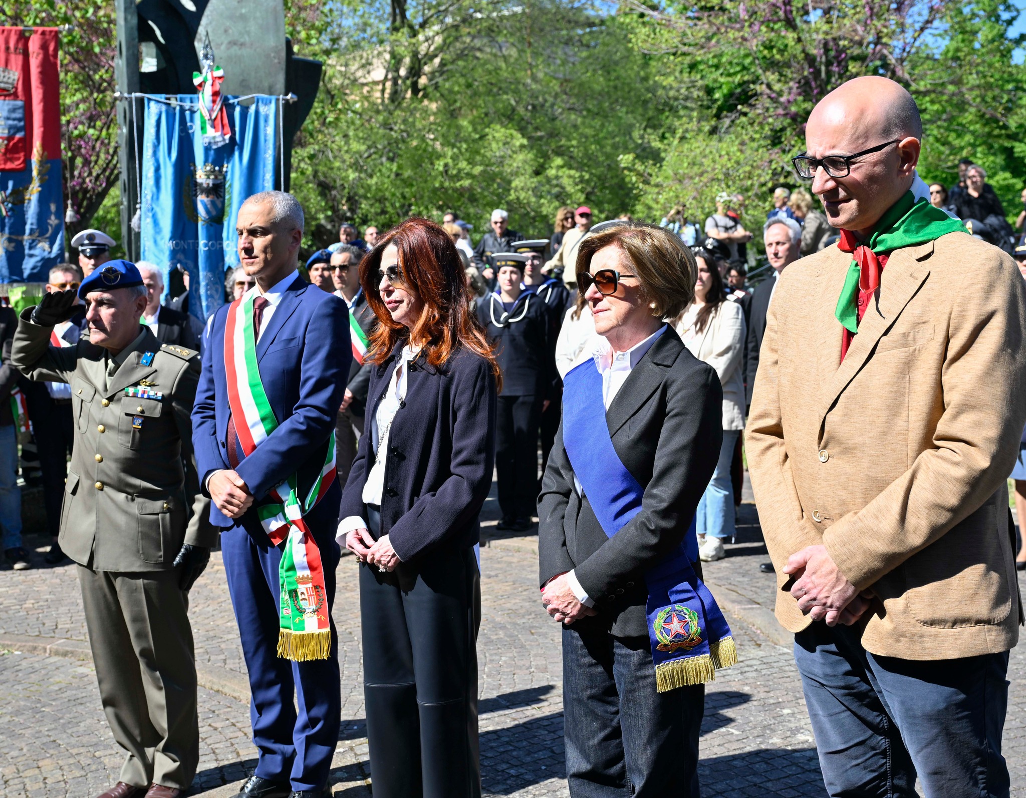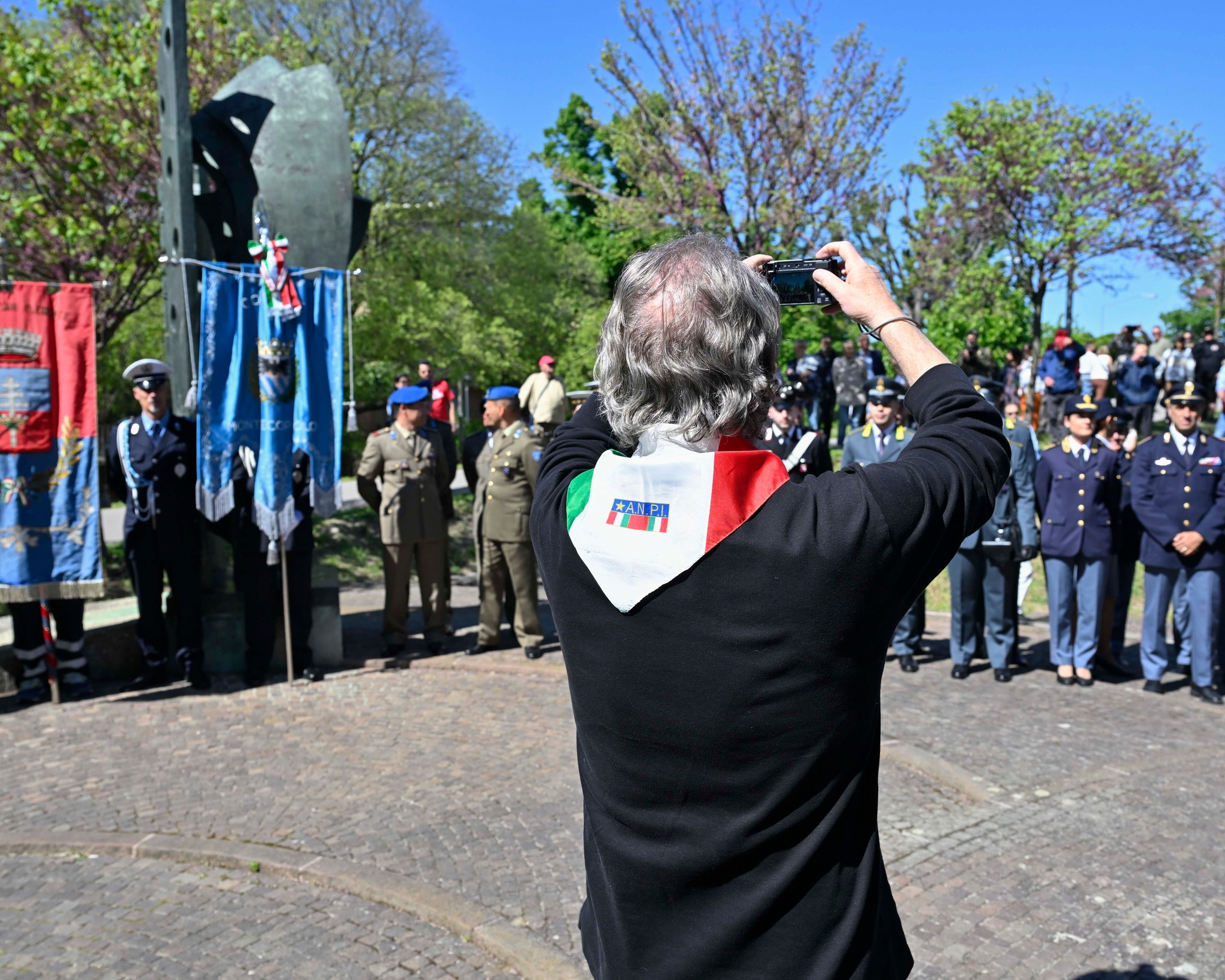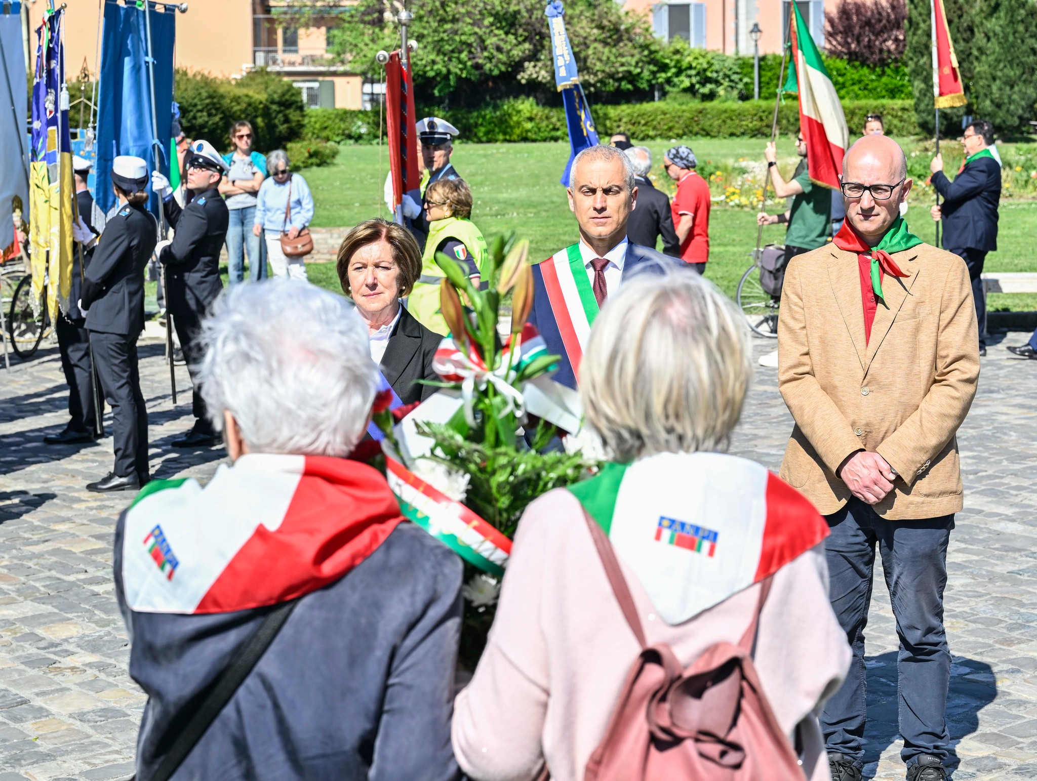 La cerimonia prende il via con la posa di una corona al Monumento della Resistenza, gesto che richiama la catena di riconoscenza verso coloro che 81 anni fa scelsero la libertà contro l'occupazione nazifascista.