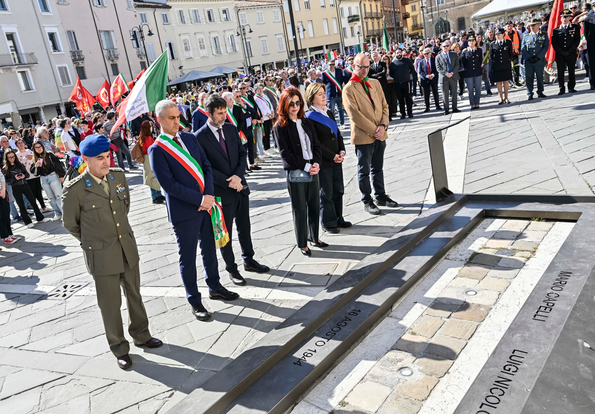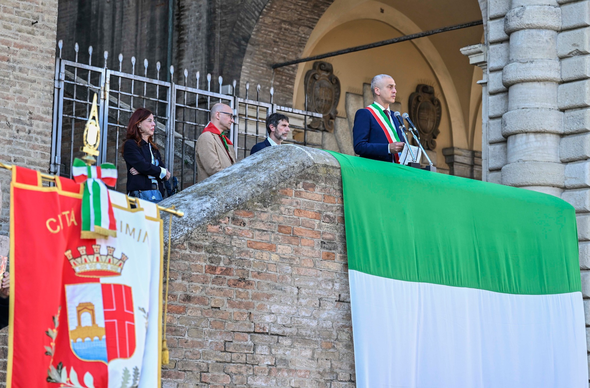 "I valori della Resistenza sono scolpiti nella Costituzione italiana. - così il sindaco Jamil Sadegholvaad, nel suo intervento -.  Sono i valori della libertà, della democrazia, della pace, della convivenza civile, del rifiuto della legge del più forte in qualsiasi ambito, epoca e latitudine essa rischi di manifestarsi. A mettere su carta quei valori furono persone dall'estrazione culturale e sociale molto diversa, che seppero stare dalla stessa parte ‘del fiume e della Storia’ per schierarsi insieme contro il nazifascismo. Democristiani, comunisti, liberali lavorarono fianco a fianco per un anno e mezzo in nome di un bene comune: il futuro di un Paese che voleva risorgere, lasciandosi definitivamente alle spalle violenza e dolore. Per questo la nostra è una Costituzione democratica e antifascista. Il no ai nazifascisti non fu detto solo dai partigiani, ma dai militari che rifiutarono le Brigate Nere, dai carabinieri molti dei quali uccisi o deportati in Germania, dalle donne, dai sacerdoti, da tutti coloro che rischiarono la vita per nascondere un ebreo o sostenere chi combatteva. Quel no corale fu madre e padre di una Costituzione che è di tutti. Ancora oggi. Per questo il valore del 25 aprile non sta solo nella storia, ma vive nella quotidianità, nelle vie, nelle piazze, nelle scuole, nei luoghi di lavoro di Rimini, la nostra bellissima città. Il 25 aprile è patrimonio nazionale. È festa popolare. È festa di tutti. Viva la Liberazione.”