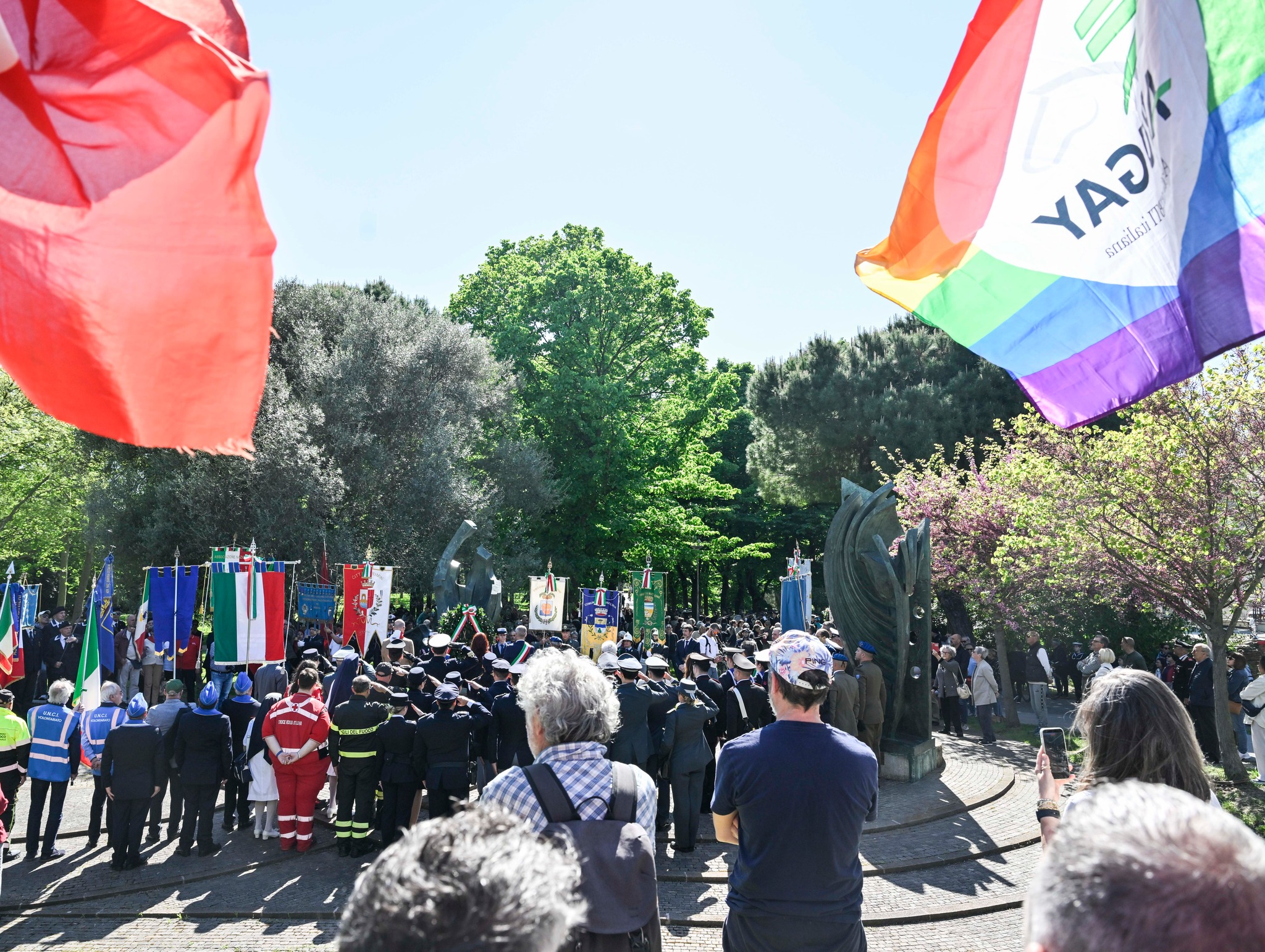 È però nel pomeriggio che Rimini si ferma davvero, raccogliendosi attorno al cuore pulsante delle celebrazioni ufficiali per l'81° Anniversario della Liberazione d'Italia.  Piazzale Roma (Parco Cervi) si trasforma in un crocevia di memoria e di presente: autorità istituzionali, delegazioni partigiane, associazioni combattentistiche e d'Arma, rappresentanze politiche, sindacali, studentesche e cittadine si radunano in quello stesso spazio che i riminesi conoscono come luogo di incontro quotidiano, diventato oggi il punto di partenza di un percorso collettivo.