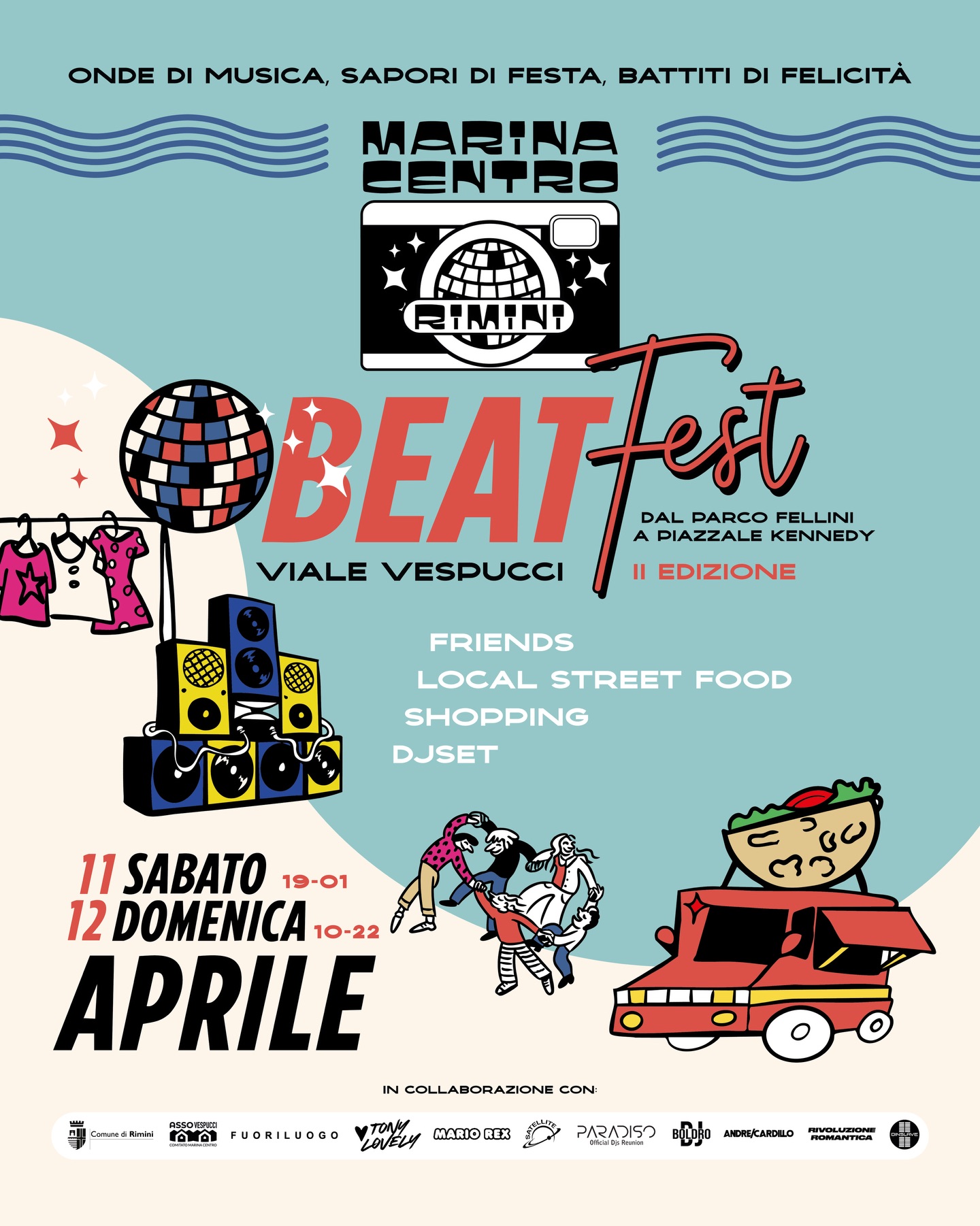 Il fine settimana si anima con il Beat Fest, un evento che unisce musica, cibo e shopping a Marina Centro. Due giornate di festa, con concerti dal vivo, dj set e mercatini, ma anche attività sportiva con il torneo di Foot Table presso il coloratissimo playground 'Rimini Beach Court' di Piazzale Kennedy e sedute di pilates previste la domenica mattina. Un’occasione per salutare l’arrivo della primavera tra divertimento e socialità.