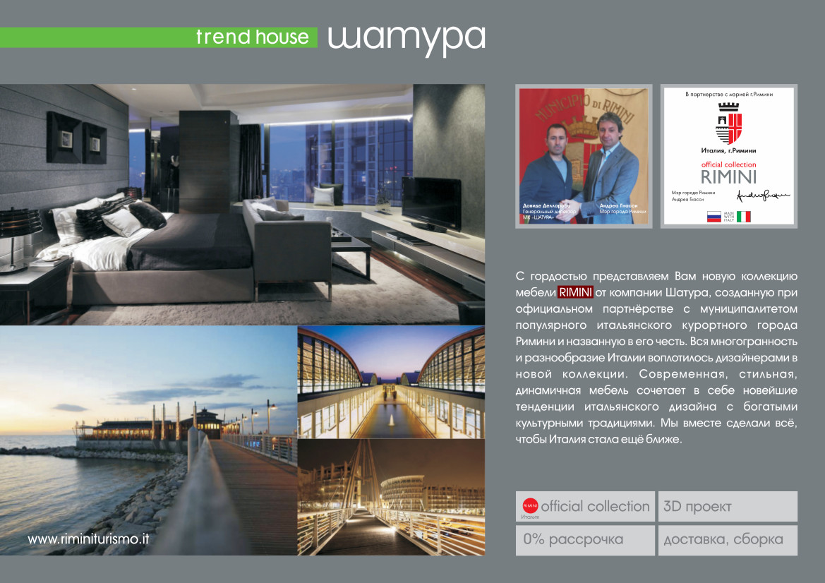 "L'associazione di un marchio riconosciuto in Russia come "RIMINI"- commenta l’ingegnere Davide Dellarosa, CEO di Shatura-Group - con i prodotti di della nostra azienda SHATURA, una importante e storica azienda di produzione nazionale, è stata da subito riconosciuta come estremamente positiva. Il grande potenziale dell'iniziativa è risultato evidente sia all'interno della azienda, tra il personale operativo degli uffici marketing e degli uffici vendite che all'esterno, da partners, dealers e soprattutto dal cliente finale. Il successo del progetto di co-marketing è oggi evidente e consolidato e le prospettive di sviluppo, con l'apertura di nuovi punti vendita e l'incremento dei fatturati, sono superiori alle attese".