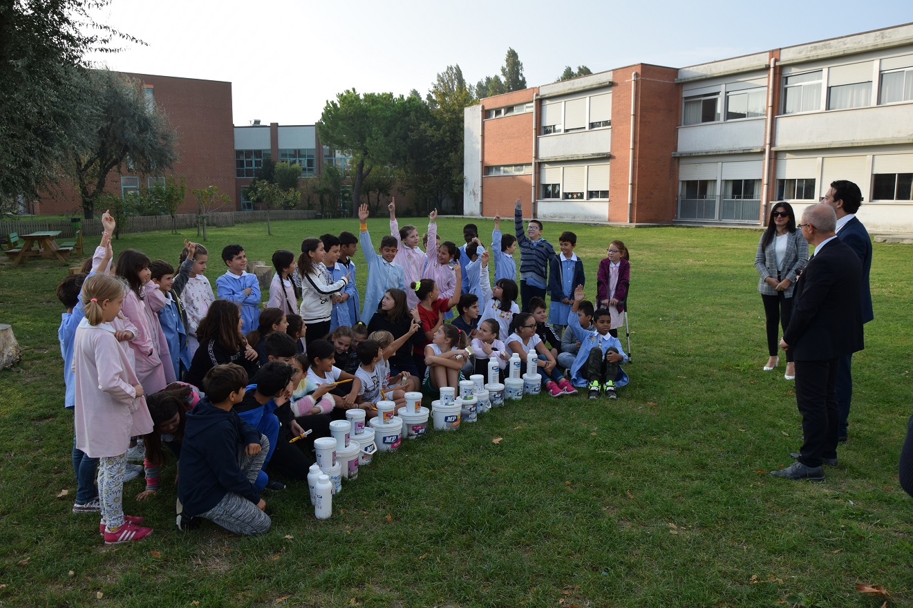 Rimini scuole sostenibili: 30 bidoni di vernici donate alla scuola primaria Flavia Casadei per il 50esimo anniversario della MP di Viserba