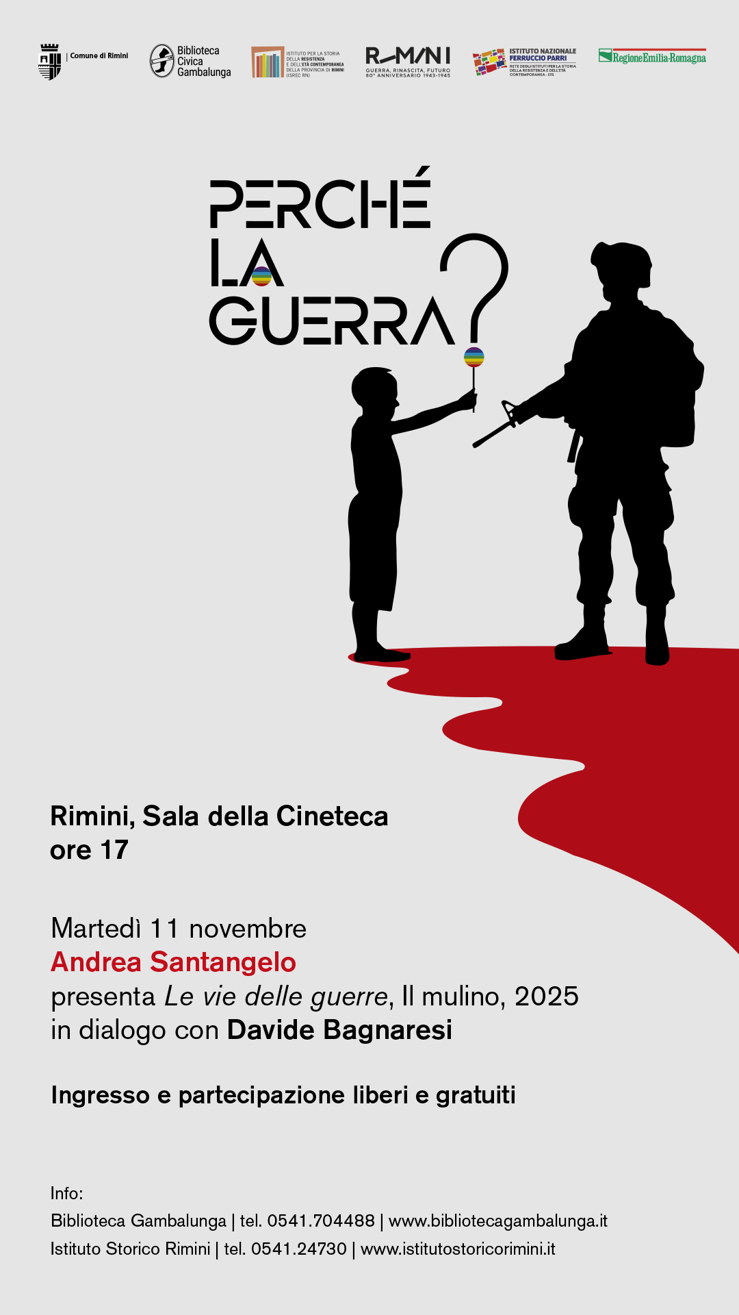 Il ciclo di lezioni magistrali sul tema Perché la guerra? promosso dal Comune di Rimini nell’anno dell’80° anniversario della Liberazione d’Italia e curato dalla Biblioteca Gambalunga e dall’Istituto per la storia della Resistenza e dell’età contemporanea della provincia di Rimini, prosegue martedì 11 novembre con la presentazione nella Sala della Cineteca comunale (ore 17) dell’ultimo libro dello storico militare Andrea SantangeloLe vie delle guerre (Il Mulino 2025). A dialogare con l’autore sarà lo storico riminese Davide Bagnaresi.