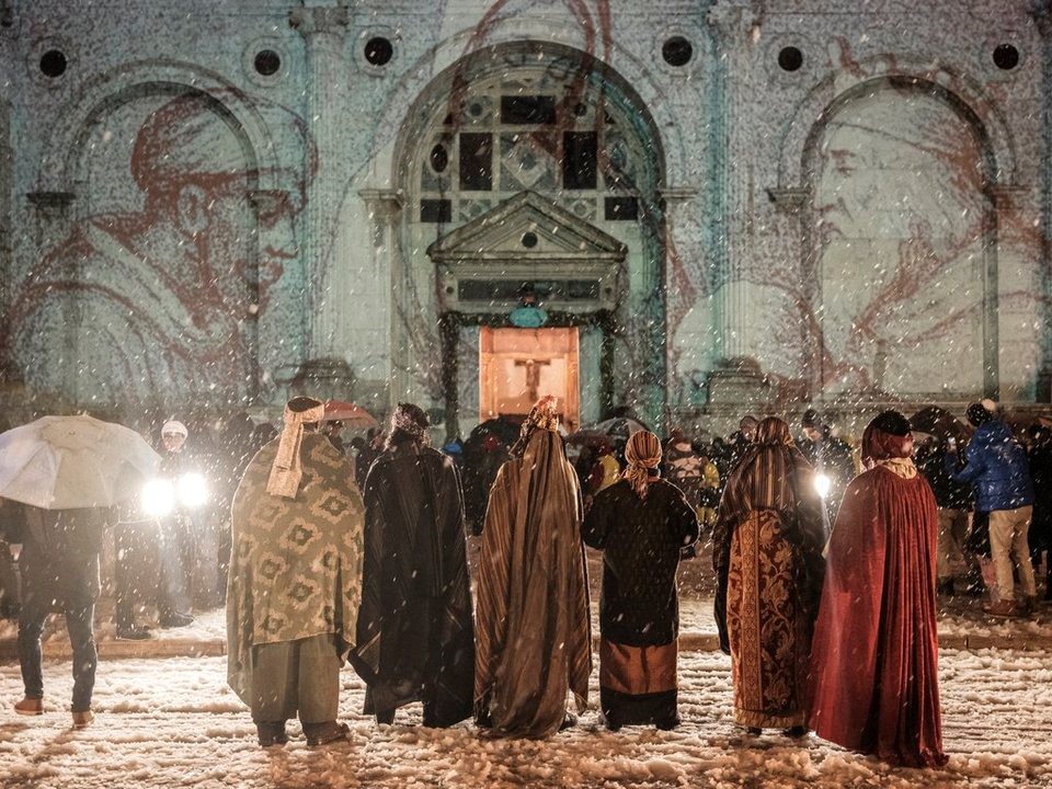 Il centro storico imbiancato trasforma Rimini in un racconto collettivo. Grande partecipazione per la terza edizione dell’evento tra arte, fede e comunità