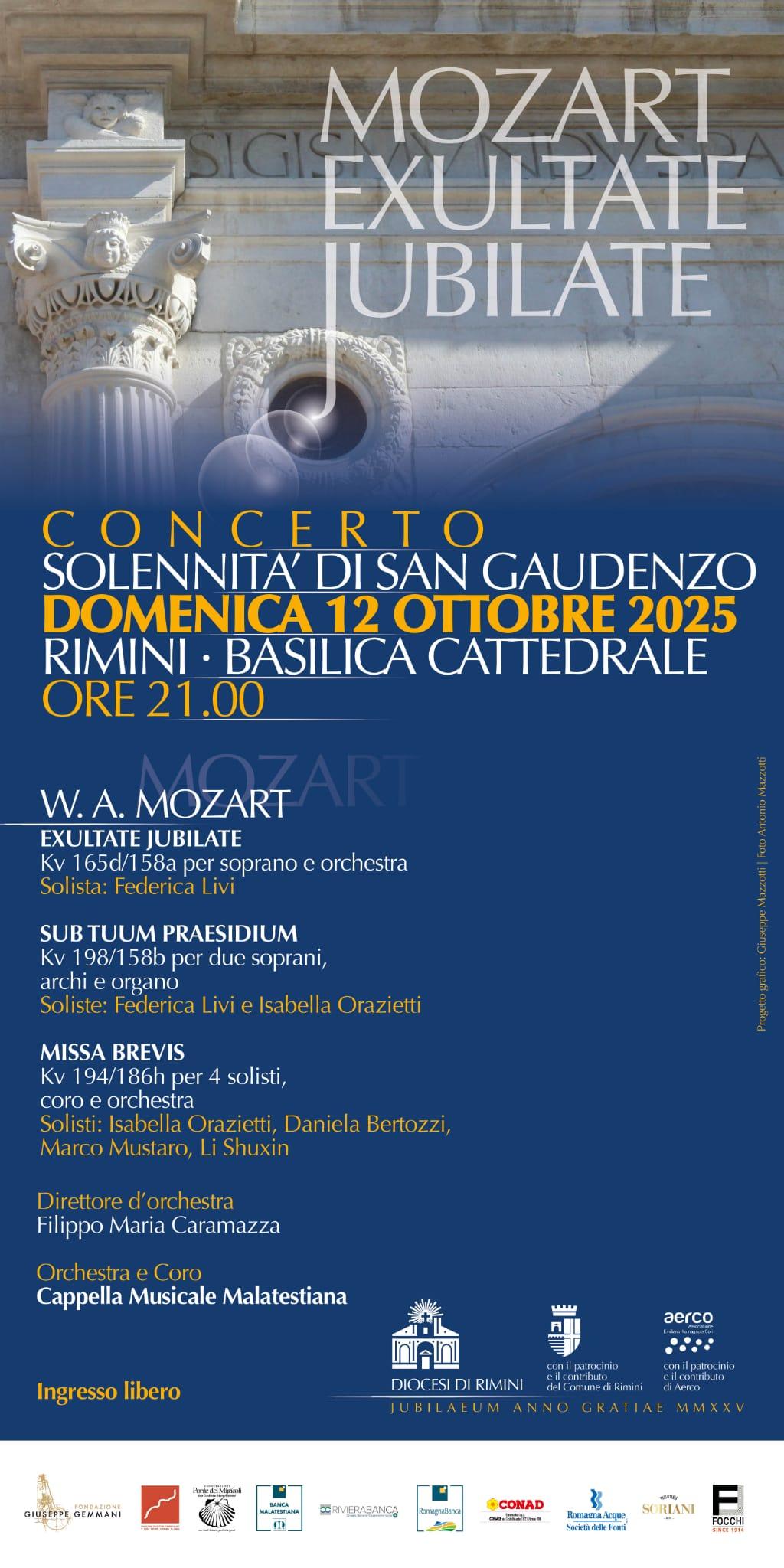 Nella maestosa cornice della Basilica Cattedrale di Rimini, avrà luogo il tradizionale Concerto per la Festività di San Gaudenzo. Giunto alla sua diciottesima edizione, l'evento è promosso dalla Diocesi di Rimini in collaborazione con la Cappella Musicale Malatestiana e vedrà la partecipazione del Vescovo Nicolò Anselmi.