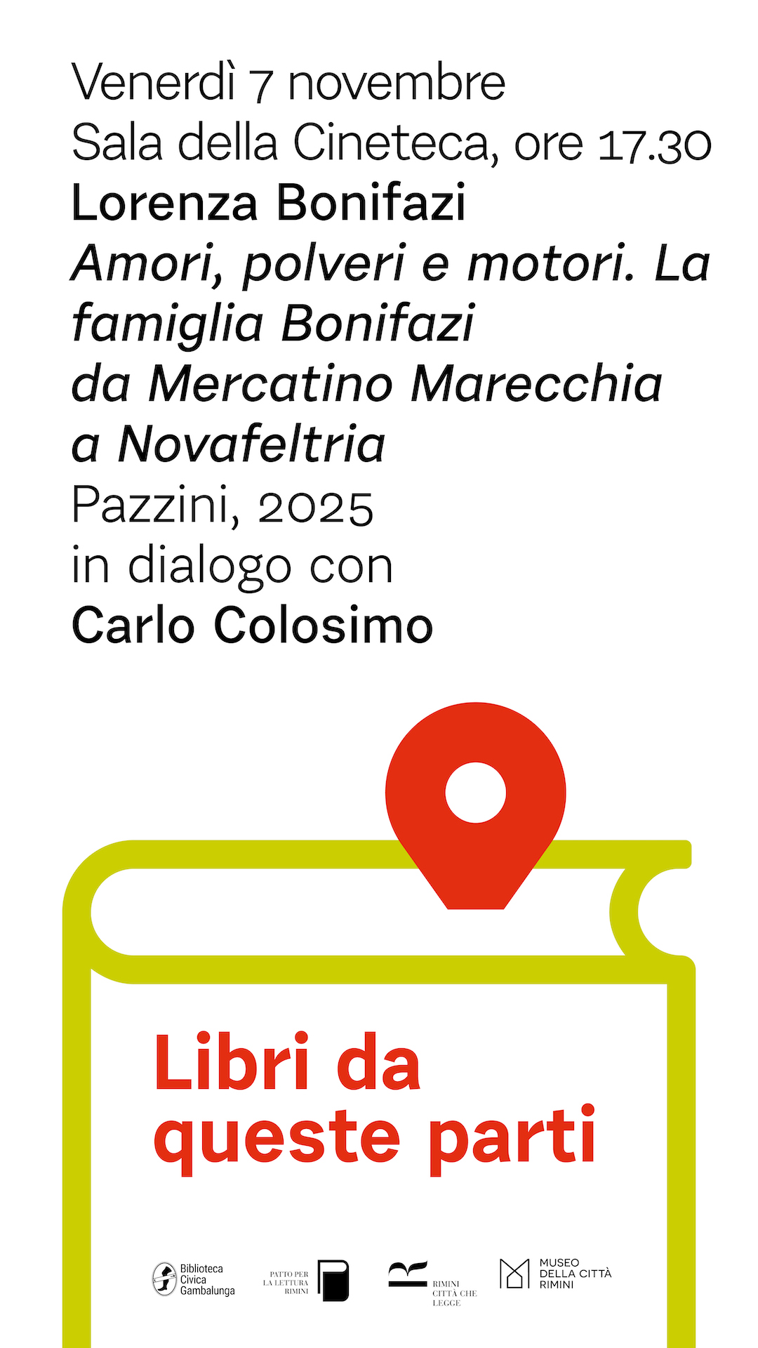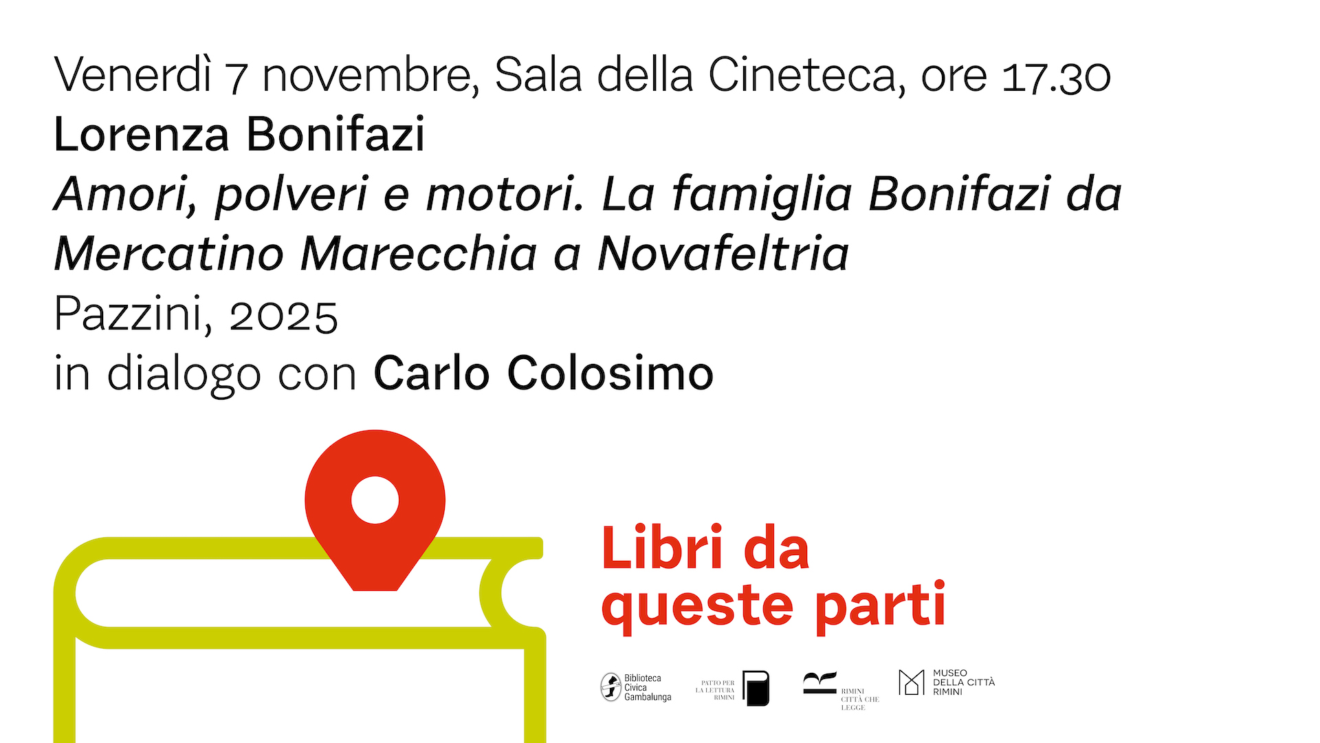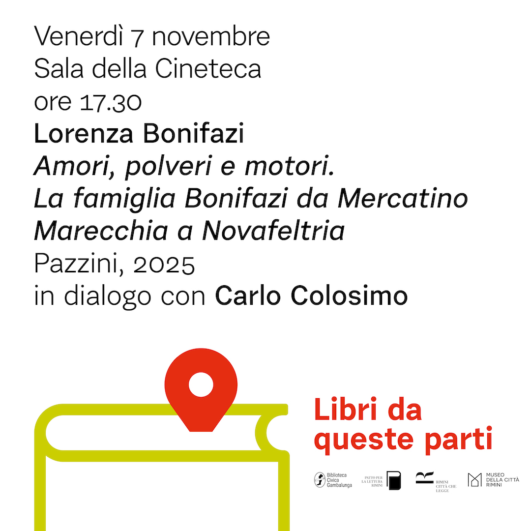 È il caso di “Amori, polveri e motori. La famiglia Bonifazi da Mercatino Marecchia a Novafeltria”, che Lorenza Bonifazi presenta venerdì 7 novembre alle ore 17.30 nella Sala della Cineteca della Biblioteca Gambalunga di Rimini, nell’ambito della rassegna “Libri da queste parti 2025”. A dialogare con l’autrice sarà lo storico Carlo Colosimo