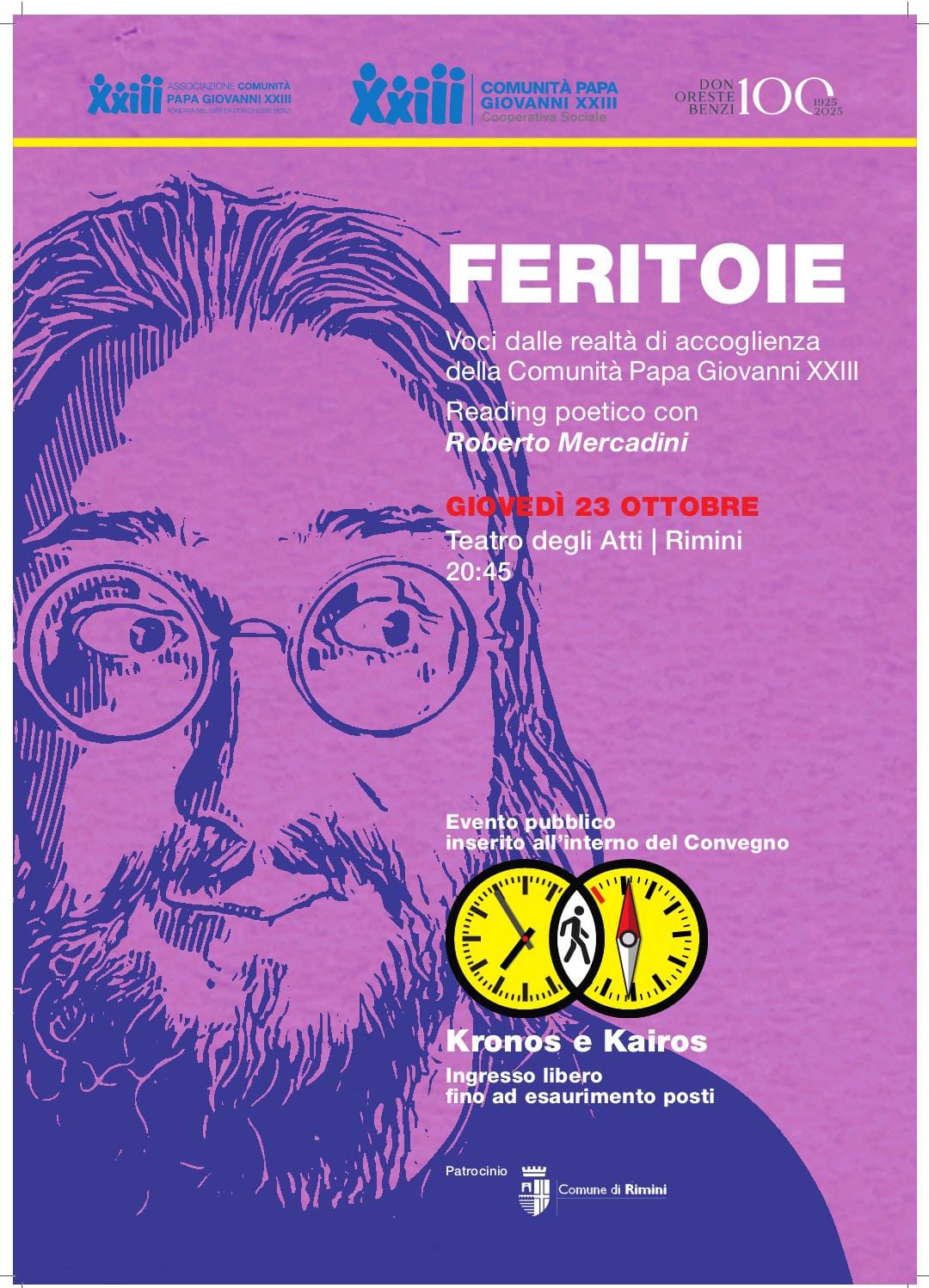 In “Feritoie” Mercadini terrà un reading poetico in cui, raccogliendo le voci di chi sta affrontando un percorso di recupero dalle dipendenze patologiche nelle comunità di don Oreste Benzi, farà un viaggio attraverso i versi di famosi poeti.